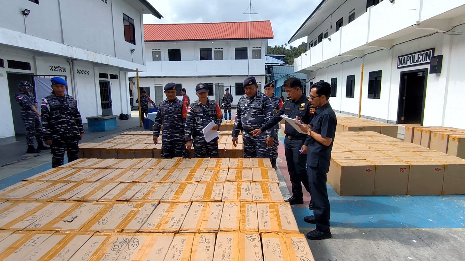 refubliknews.com, – TNI AL, Kepulauan Anambas,- Pangkalan TNI Angkatan Laut (Lanal) Tarempa serahkan Barang Bukti Rokok Ilegal hasil Penangkapan oleh Tim Fleet One Quick Respon (F1QR) sebanyak 223 Bal dengan nominal kerugian negara ditaksir mencapai Rp. 1.700.000.000-, di Pelabuhan Roro, Kecamatan Kute Siantan, Kabupaten Kepulauan Anambas kepada Kantor Bantu Bea dan Cukai Tarempa, bertempat di Lapangan Napoleon Lanal Tarempa, Jalan Kartini, Kelurahan Tarempa, Kecamatan Siantan, Kabupaten Kepulauan Anambas, Jumat (7/3/2025).