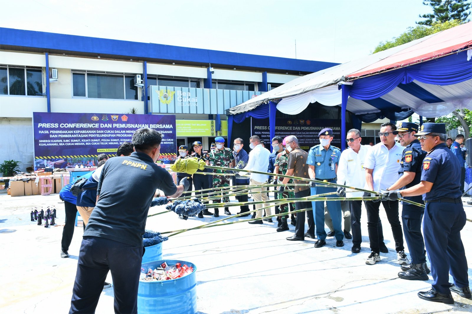 “Melalui sinergi, koordinasi, dan kolaborasi Bea Cukai bersama aparat penegak hukum dan instansi terkait terus berkomitmen melindungi masyarakat khususnya di wilayah Sumatra Utara dari ancaman penyelundupan dan peredaran barang ilegal. Pemusnahan dilakukan melalui pembakaran, penghancuran, dan pemotongan, sehingga barang-barang tidak dapat digunakan lagi,” ujar Sugeng Apriyanto.