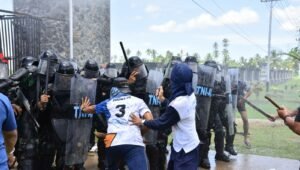 TNI AL, Mempawah,- Lantamal XII Pontianak beserta Yonmarhanlan XII mengerahkan Pasukan Huru Hara (PHH) untuk menghalau pendemo dari sekelompok masyarakat maritim yang menyerbu masuk ke gapura gerbang penjagaan untuk menyampaikan aspirasi, karena langkanya bahan bakar untuk nelayan. Kejadian ini terjadi di Mako Lantamal XII, Jalan Raya Wajok KM.17, Kabupaten Mempawah, Kalimantan Barat, Kamis (02/03/2023).