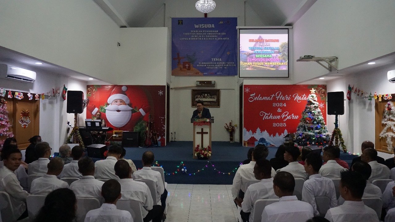 refubliknews.com,- Jakarta Lapas Narkotika Jakarta bekerja sama dengan Yayasan Pemuridan Timotius Doulos menggelar kegiatan wisuda Alkitab bagi warga binaan, sebagai bagian dari upaya rehabilitasi dan pembinaan yang lebih bermakna. Kegiatan ini dilaksanakan di Gereja El – Shaddai Lapas Narkotika Jakarta dan dihadiri oleh sejumlah pejabat serta keluarga warga binaan.