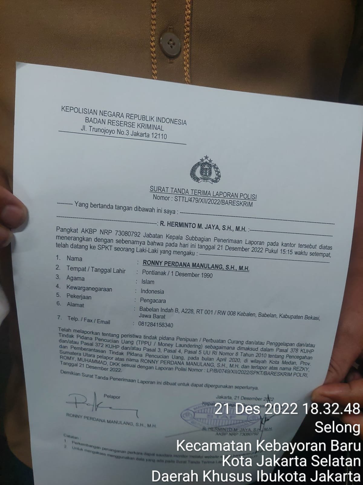 Kuasa Hukum Isyamsuddin yaitu Boni Pasaribu, SH , Ronny Perdana Manulang, SH dan Luqman Hakim, SH mengunjungi Mabes Polri serahkan berkas bukti dugaan penipuan pemilik Trading Investasi bodong GSC yang berkantor di Pontianak Kalimantan barat milik Rezky, Romy dan Muhamad yang alami kerugian Isyamsuddin dan Maulana hingga 64 milyar rupiah lebih. Rabu (21/12/2022) Mabes Polri Jakarta Selatan.