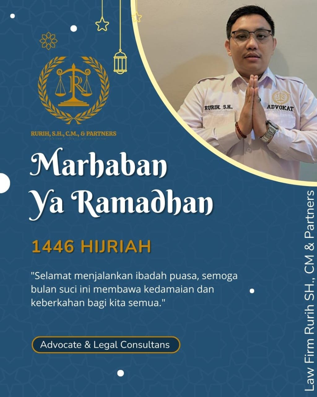 refubliknews,com,- Jakarta, – Advokat muda, Rurih SH.,CM mengucapkan Selamat Menunaikan Ibadah Puasa Ramadhan kepada umat Muslim, Khususnya di Indonesia. Ucapan tersebut disampaikannya kepada awak media melalui telepon seluler pada Jumat (07/03/2025) waktu menjelang berbuka puasa di hari ke 7 Ramadhan 1446 Hijriah / 2025 Masehi.