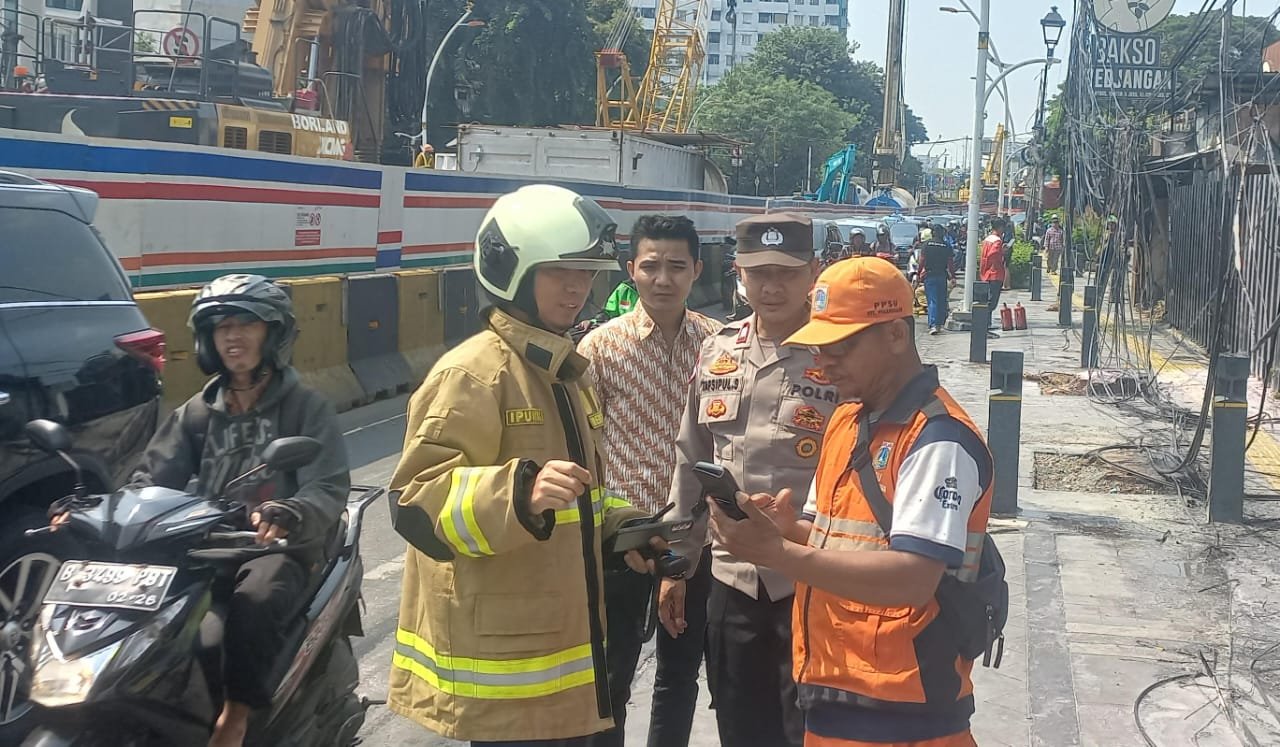 Meneruskan pesan Kapolres Metro Jakarta Pusat Kombes Pol Susatyo Purnomo Condro melalui Kapolsek Metro Menteng Kompol Bayu Marfiando utamakan pejalan kaki dan pengendara agar kabel yang menganggu segera teratasi Koordinasi dengan pihak PLN.