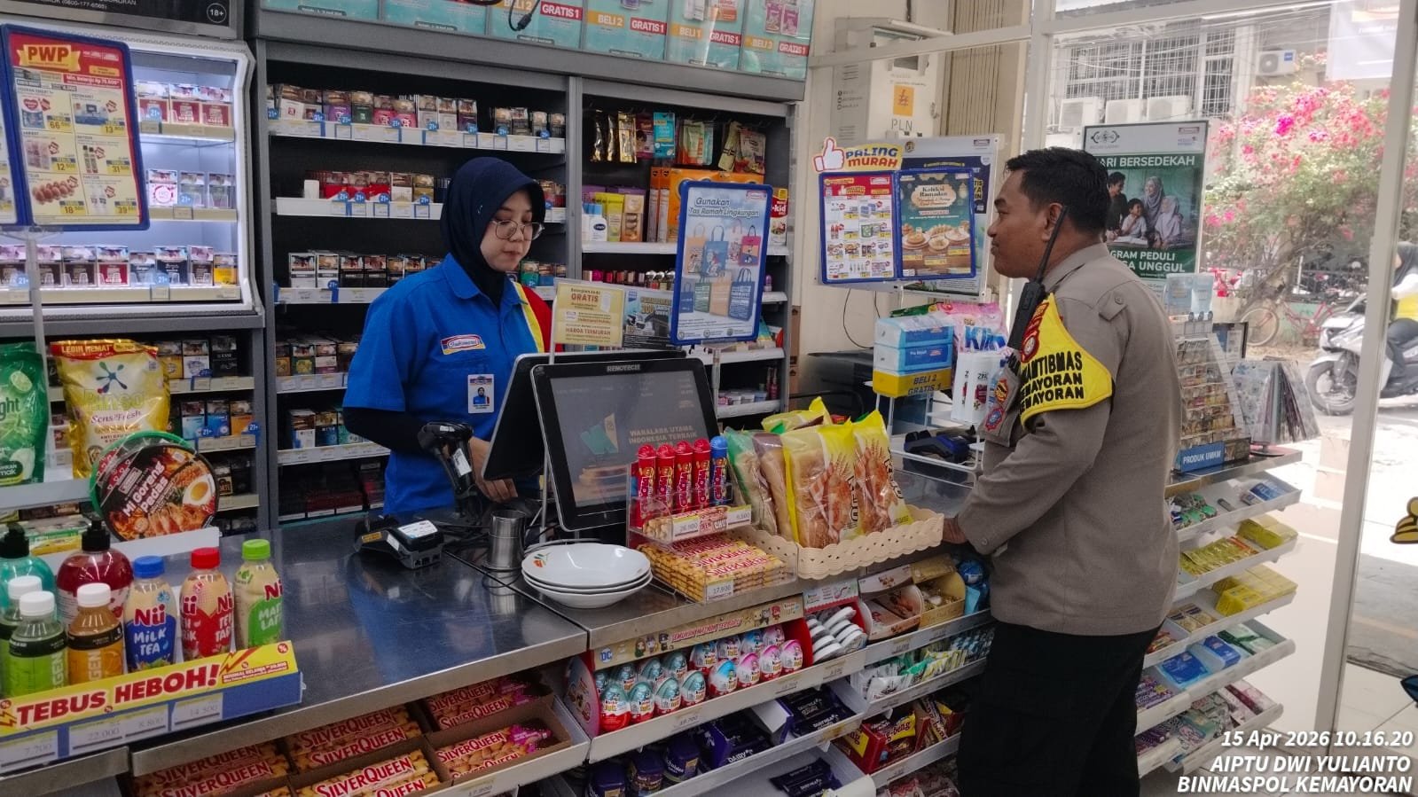 Dalam kegiatan tersebut, Aiptu Dwi Yulianto bertemu dengan salah satu karyawan, Sdri. Rasti. Kegiatan sambang dimanfaatkan untuk melakukan koordinasi serta menyerap informasi terkait situasi keamanan di lingkungan sekitar minimarket.