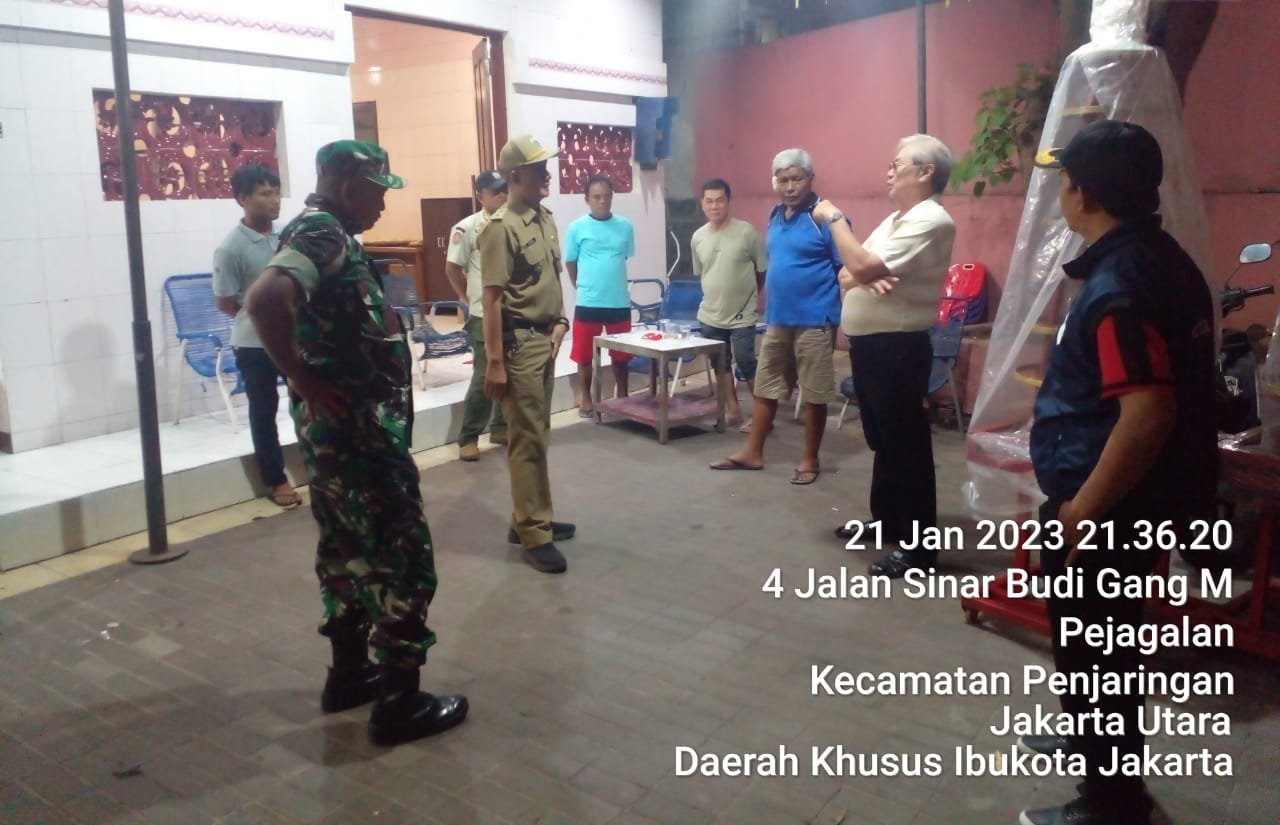 Jakarta- Sabtu, 21/01/2023 pukul : 19.00 lurah pejagalan bersama 3 pilar dan di FKDM, berpatroli keliling dan sekaligus meninjau persiapan menjelang menyambut PerayaanTahun Baru Imlek, bagi saudara kita yang besok pagi akan melaksanakan Ibadah di Wihara yang berada di wilayah Kelurahan Pejagalan.