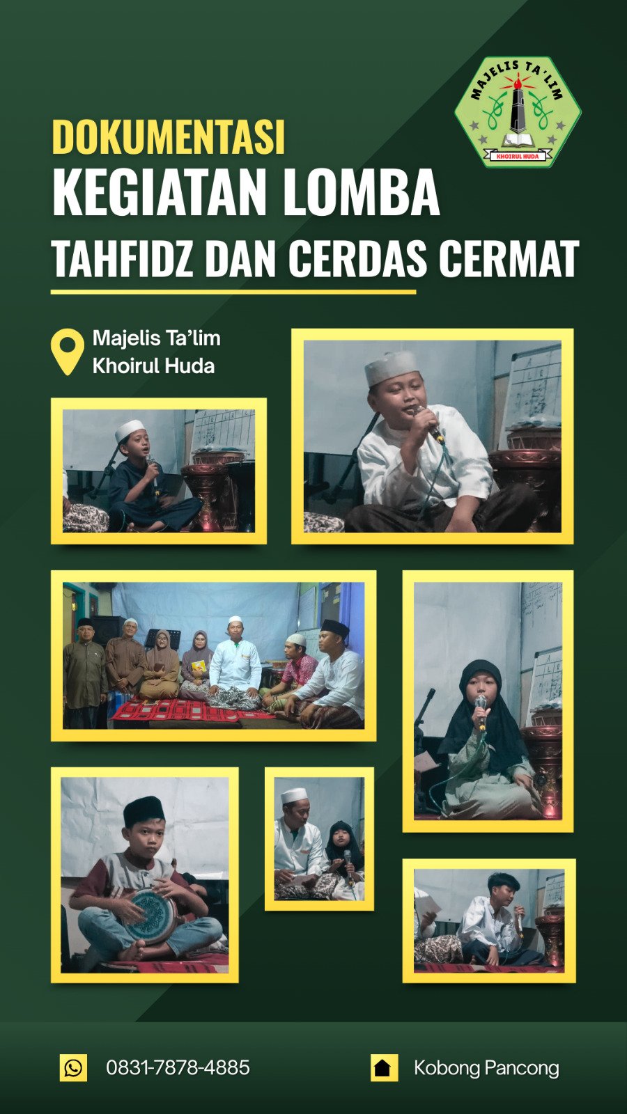Di acara ini sebelumnya kami mengadakan lomba Tahfidz Qur’an dan Lomba Cerdas Cermat, Alhamdulillah perlombaan berjalan lancar. Dan di malam puncaknya acara penutupan kami mengumumkan juara-juara lomba tersebut, juara-juara ini di raih oleh, sebagai berikut :