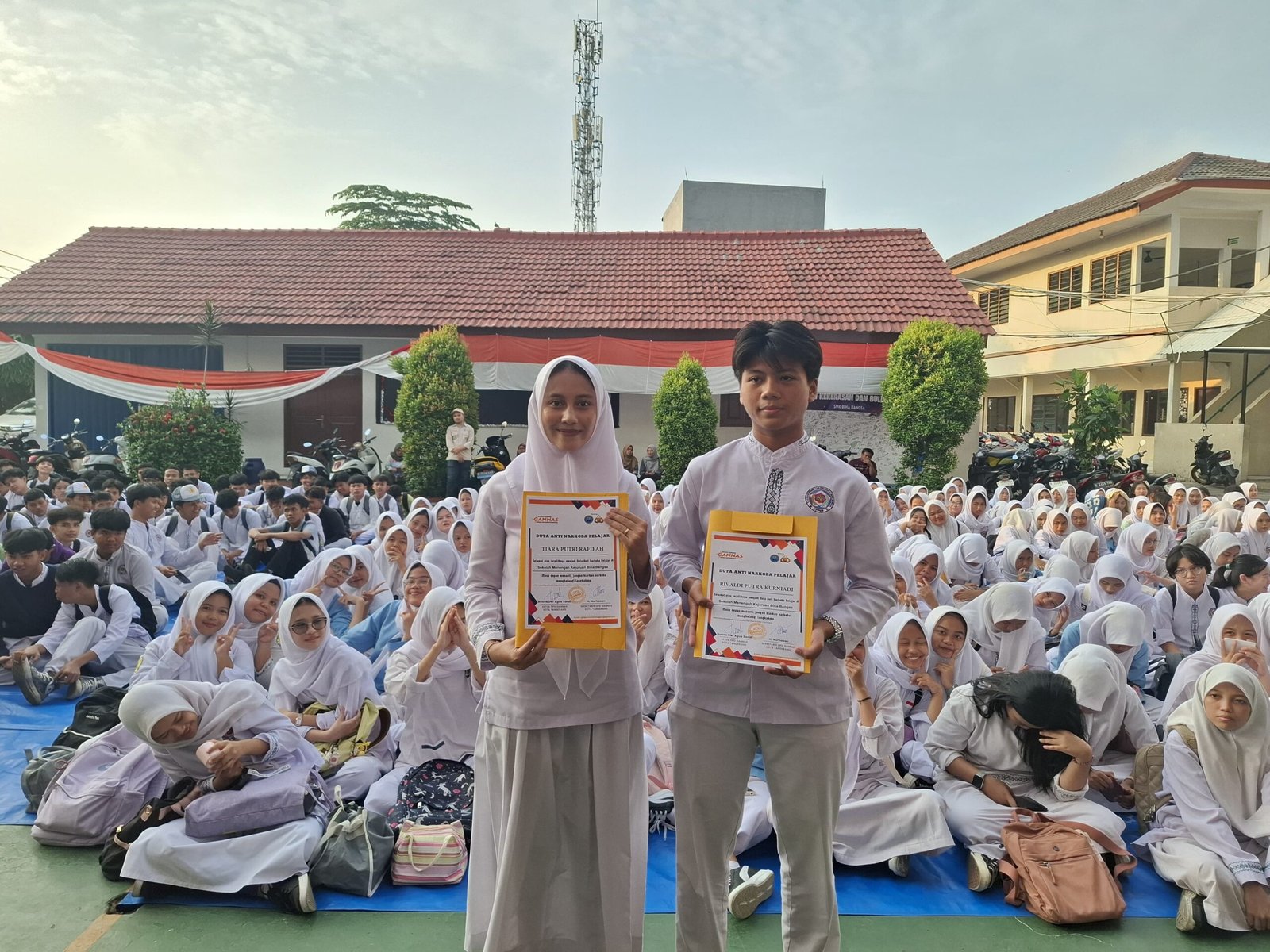 Selain itu, kegiatan ini juga menarik diikuti dengan penobatan Duta Anti Narkoba Pelajar. Adapun 2 siswa yang terpilih dan dinobatkan sebagai Duta Anti Narkoba Pelajar yakni,