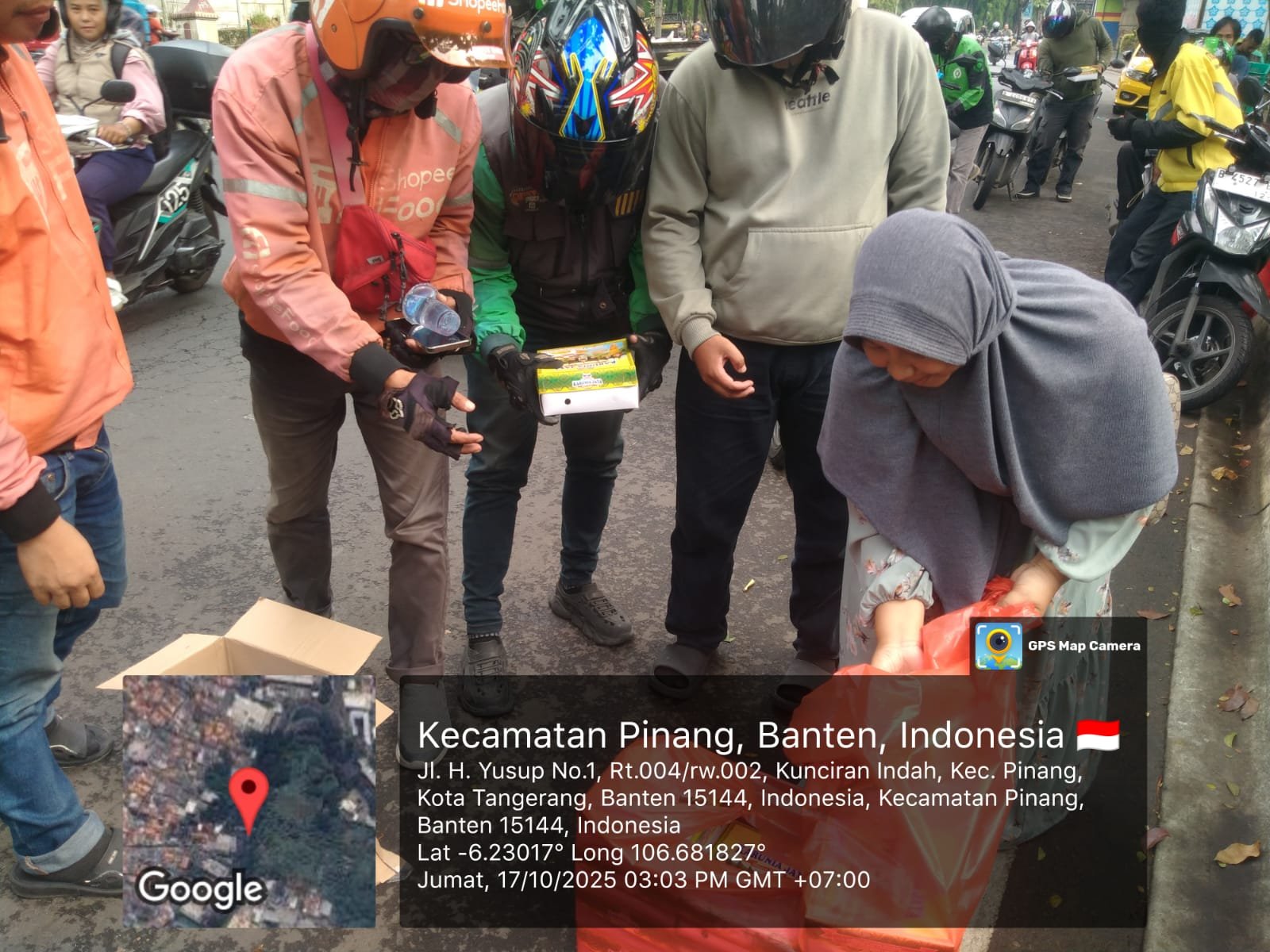 refubliknews.com,- Tangerang, Bersatunya Media, TV Gapta media AlapAlapnews membagikan ratusan nasi ke kota ke penggunaan jalan, kegiatan berlangsung di Jl. H. Yusup No.1 RT 4/2, kelurahan kunciran indah kecamatan pinang kota Tangerang.