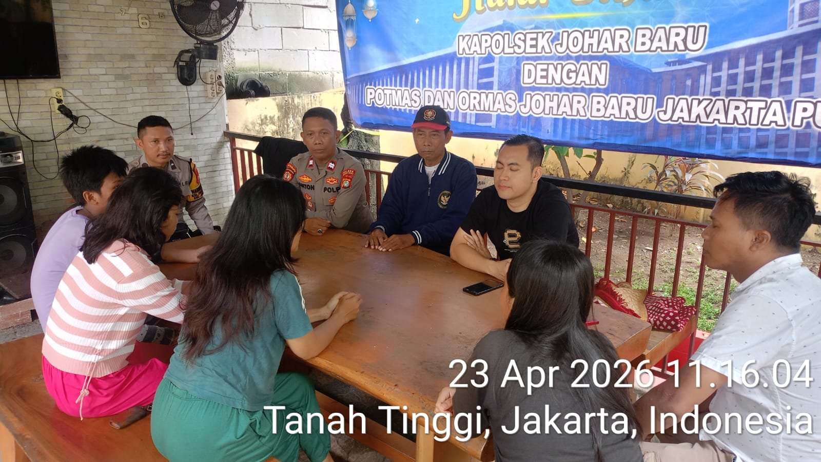 Jakarta Pusat – Polsek Johar Baru memfasilitasi mediasi antara warga Kelurahan Tanah Tinggi dan Kampung Rawa guna menyelesaikan permasalahan yang sempat terjadi akibat perkelahian antar anak. Kegiatan berlangsung pada Kamis, 23 April 2026, pukul 11.00 WIB di Mapolsek Johar Baru, Jalan Pulo Gundul RT 06/013, Kelurahan Tanah Tinggi, Kecamatan Johar Baru, Jakarta Pusat.