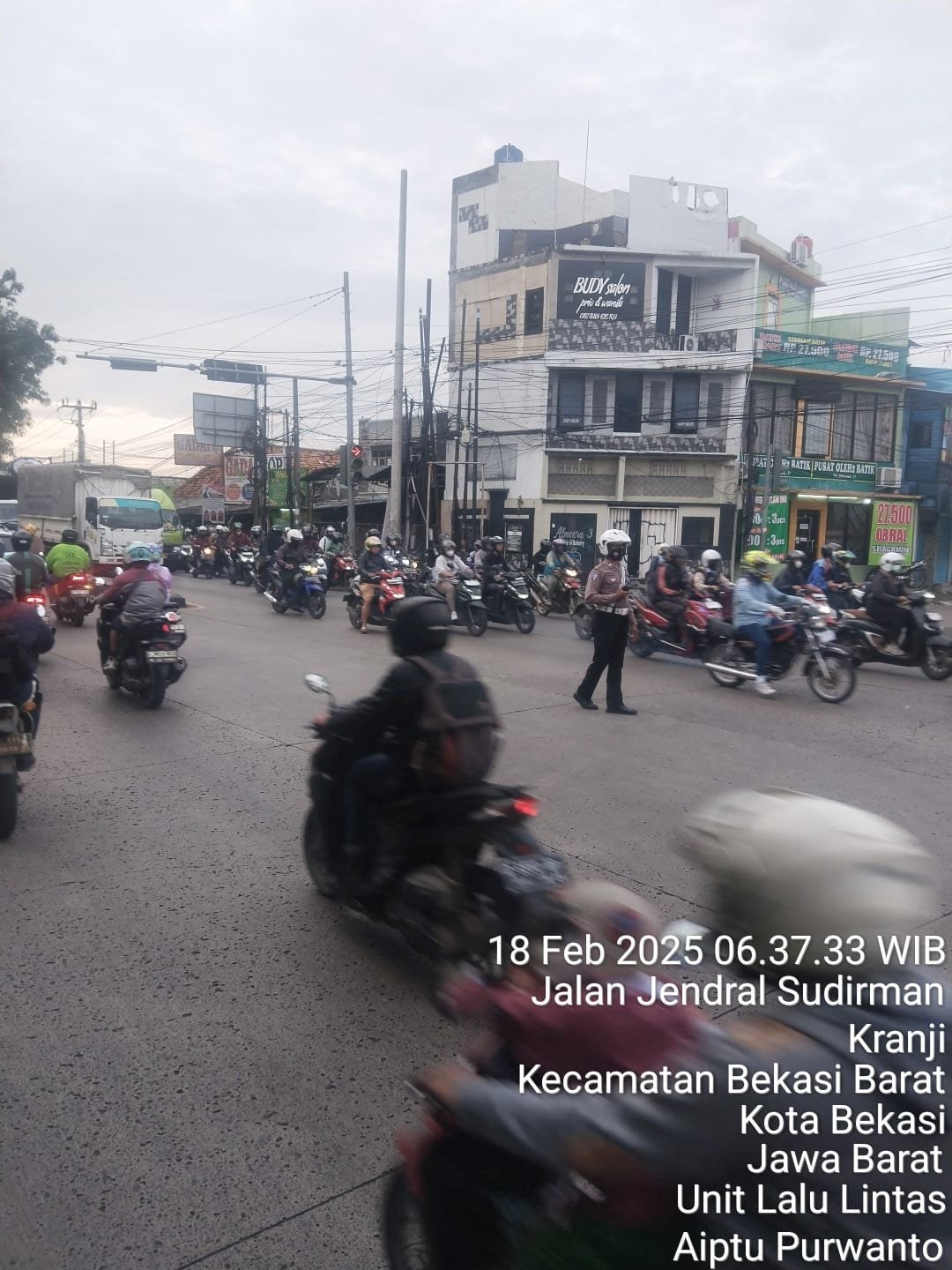 Anggota Unit Lalu Lintas menempatkan anggotannya untuk melakukan pengaturan arus lalin di Sepanjang Jalan Jenderal Sudirman – Pertigaan Perumnas I dan Pertigaan Kranji serta depan Stasiun Kranji.
