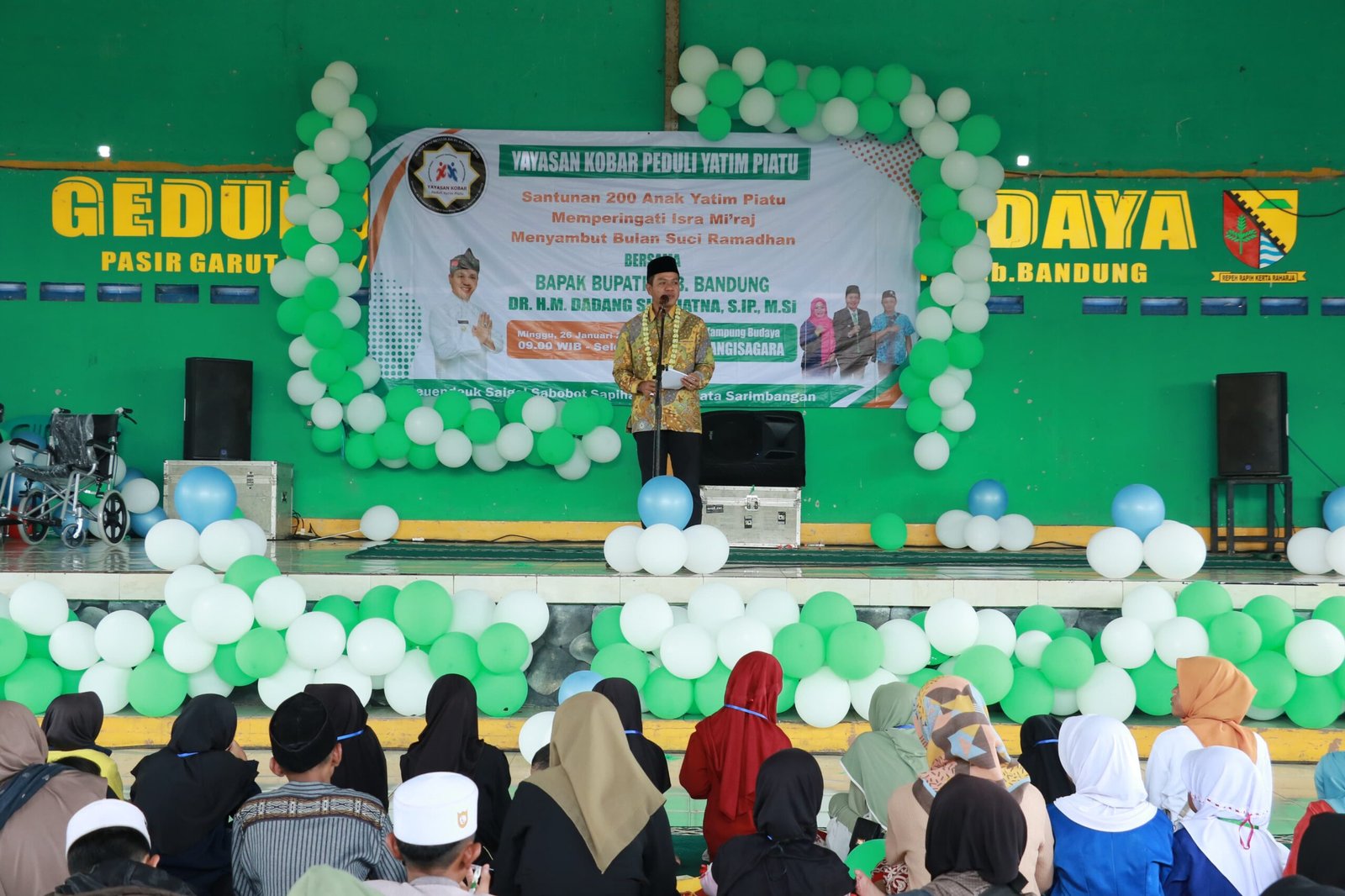 refubliknews.com,- KAB. BANDUNG – Bupati Bandung Dadang Supriatna bersama Yayasan Kober Peduli Yatim Piatu memberikan santunan kepada 200 anak yatim piatu di Gedung Budaya Desa Wangisagara Kecamatan Majalaya, Kabupaten Bandung, Minggu (26/1/2025).