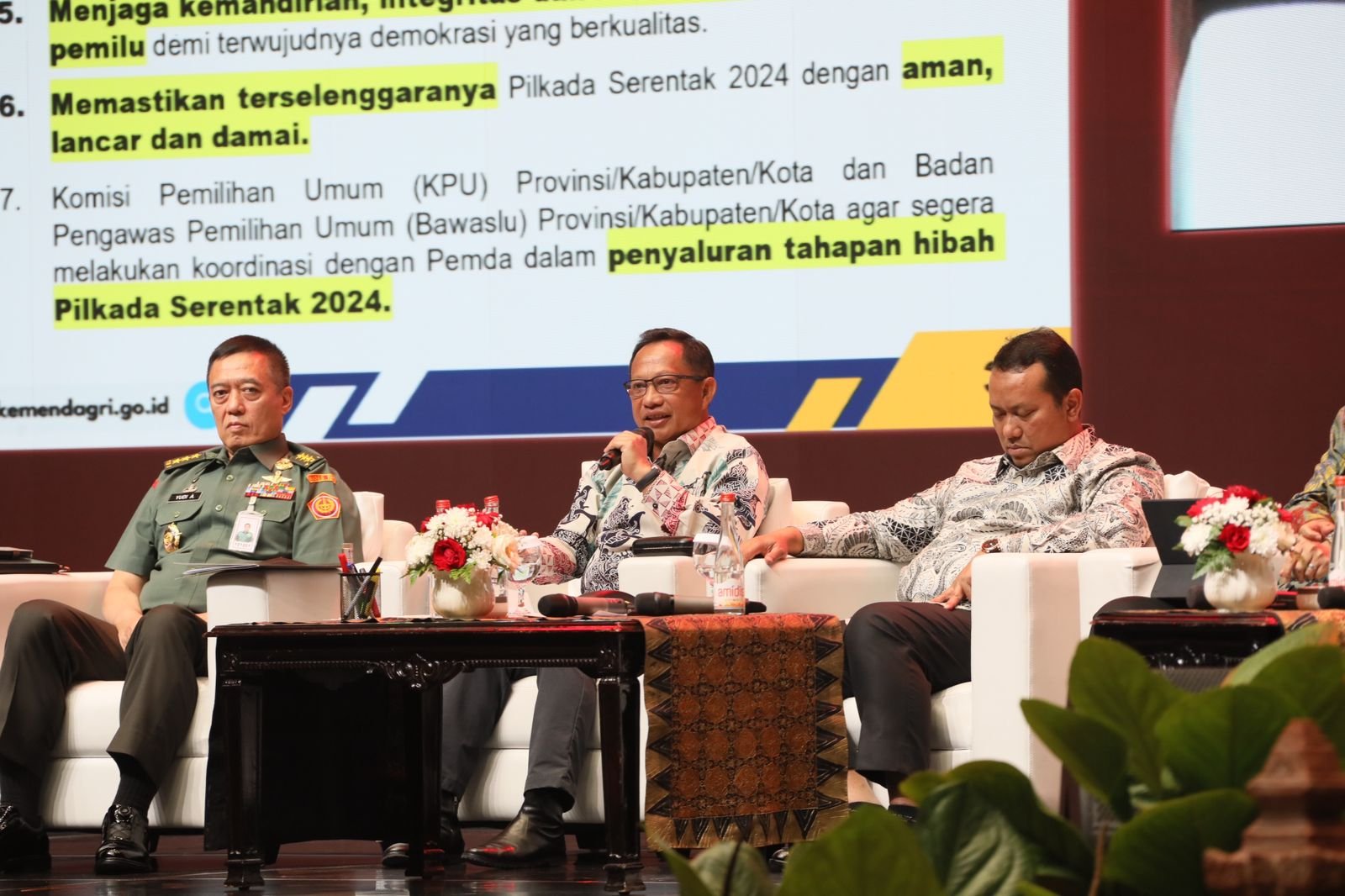 Mendagri berharap, Pilkada Serentak 2024 bisa berjalan dengan baik. Dia berpesan kepada petugas KPUD untuk segera melaporkan masalah sensitif dan berpotensi konflik kepada aparat keamanan, sebelum masalah meluas dan menimbulkan kegaduhan. Tujuannya agar masalah tersebut bisa diantisipasi melalui kerja sama dengan pihak terkait, termasuk aparat keamanan.