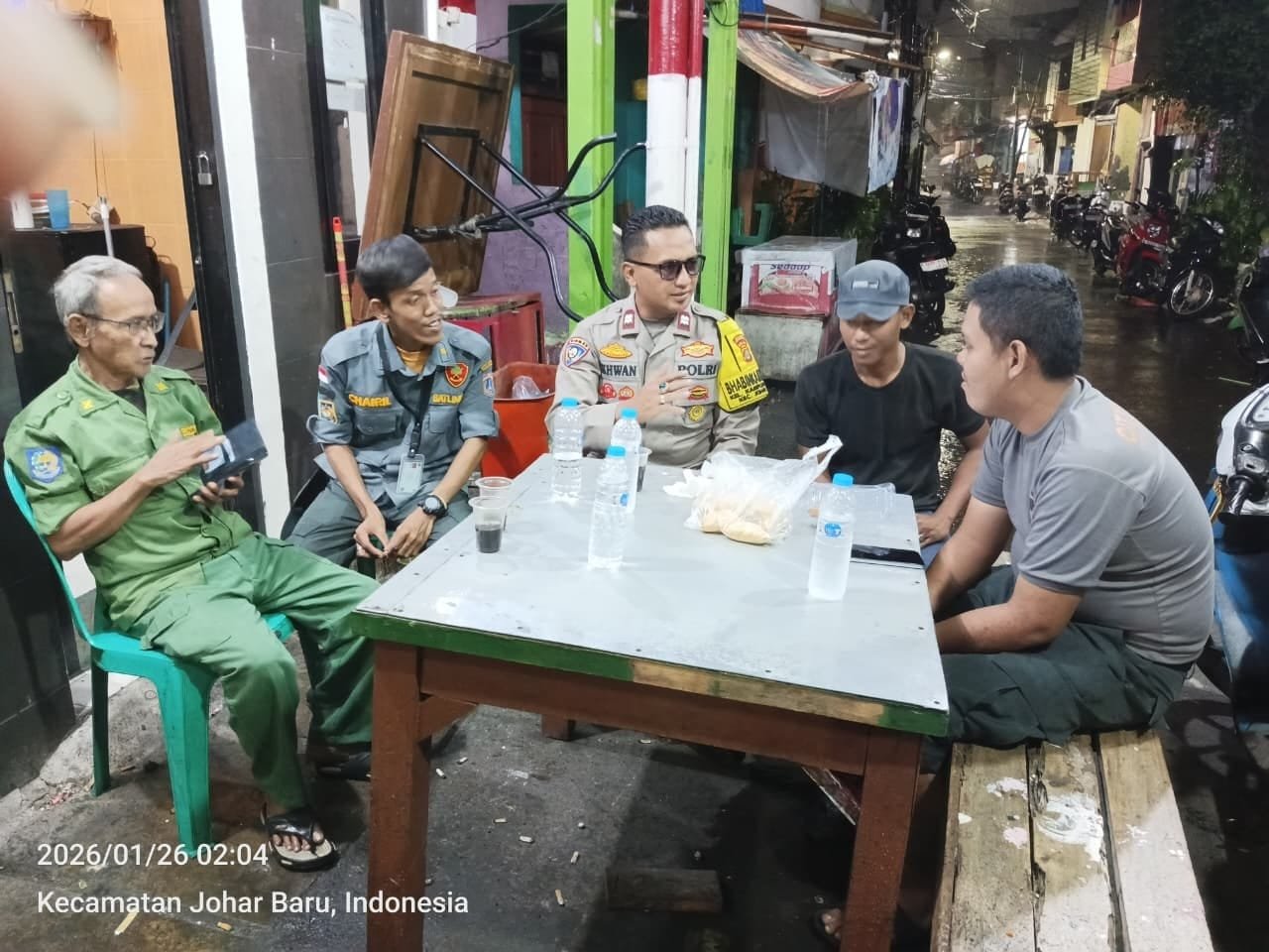 Kapolsek Johar Baru Kompol Saiful Anwar menyampaikan bahwa patroli malam hari dan kunjungan pos siskamling merupakan bentuk dukungan Polri terhadap partisipasi aktif masyarakat dalam menjaga keamanan lingkungan.