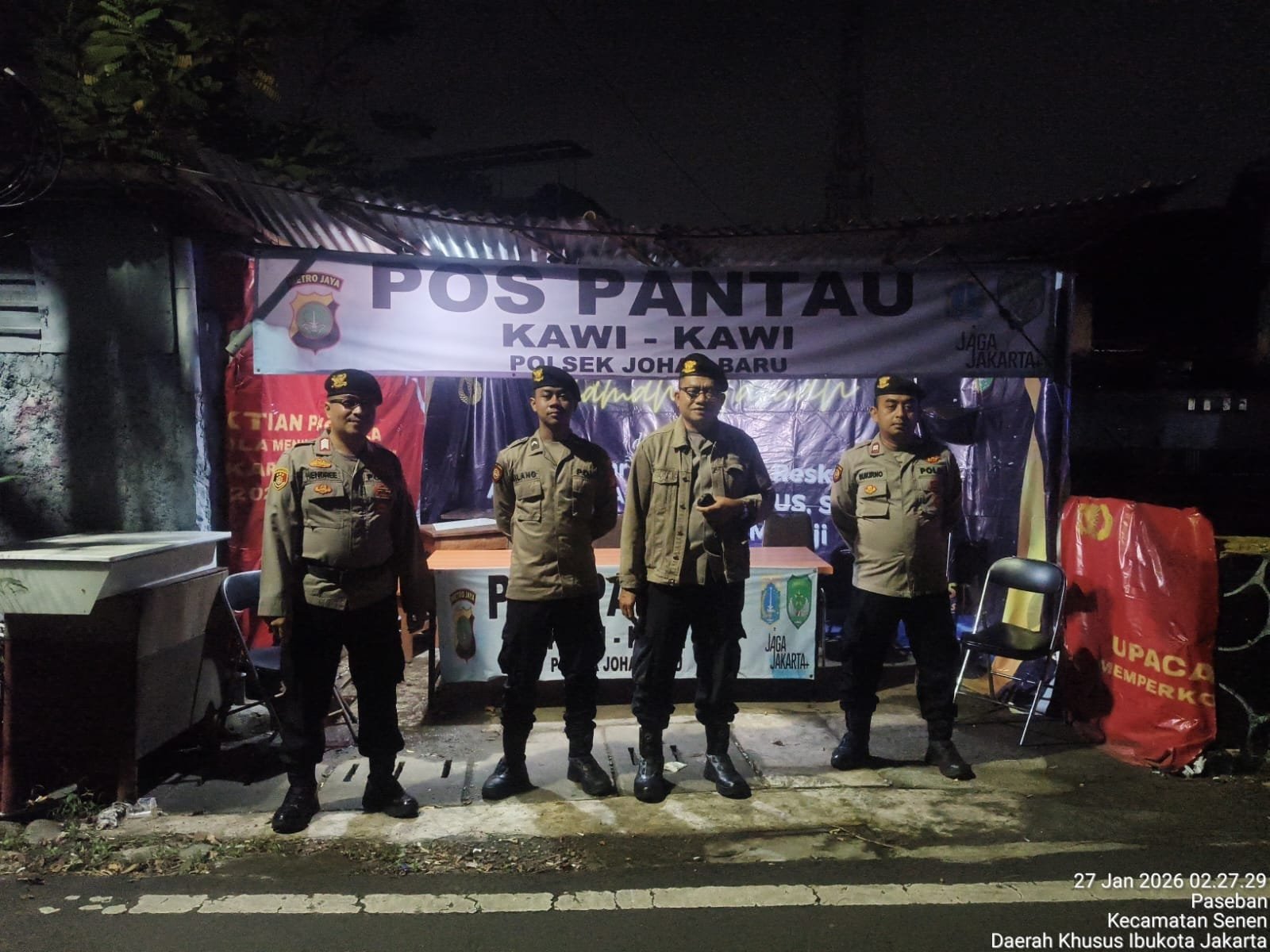 Jakarta Pusat — Untuk memastikan situasi keamanan dan ketertiban masyarakat (kamtibmas) tetap terjaga pada jam rawan dini hari, Polsek Johar Baru menggelar Patroli Cipta Kondisi guna mengantisipasi potensi gangguan kamtibmas di wilayah hukumnya, Selasa (27/1/2026) sekitar pukul 02.19 WIB.
