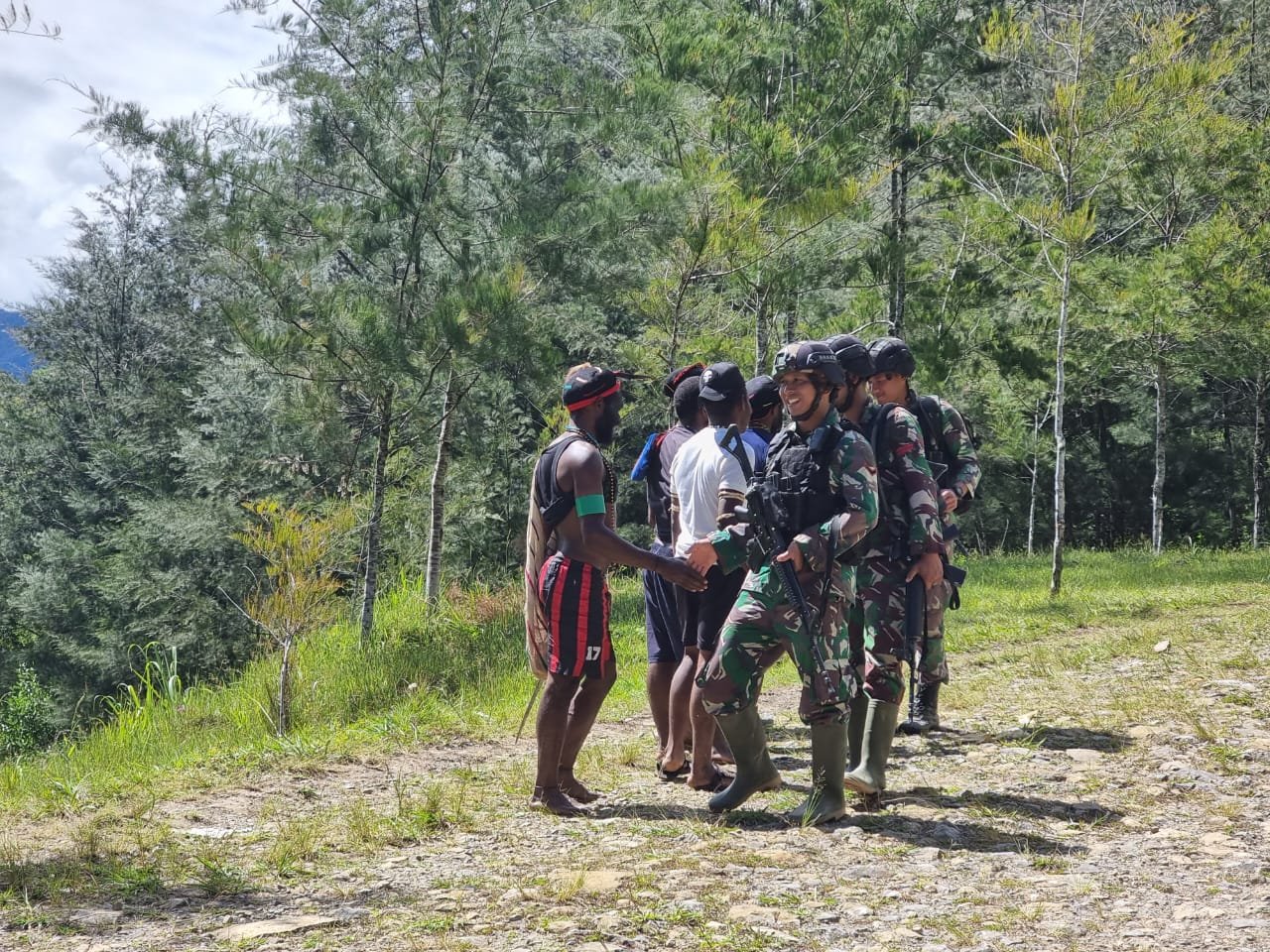 Ilaga – Satuan Tugas (Satgas) Mobile Raider 300 Siliwangi yang bertugas di daerah Papua Pegunungan Tengah tidak hanya melaksanakan patroli untuk menjaga keamanan dan kedaulatan negara, tetapi juga sambil menyapa masyarakat yang lewat dengan senyum dan salam hangat. Dengan demikian, masyarakat merasa aman dan tidak takut akan anggota TNI yang sedang melaksanakan patroli.