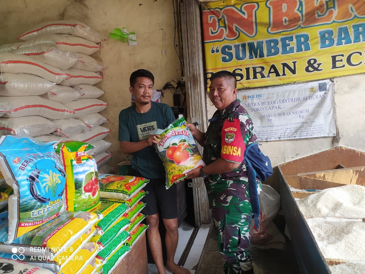Pemantauan harga beras premium dilakukan langsung anggota Koramil 05/Cilincing di Toko Sumber Baru Toko beras, Rabu (25/01/2023).