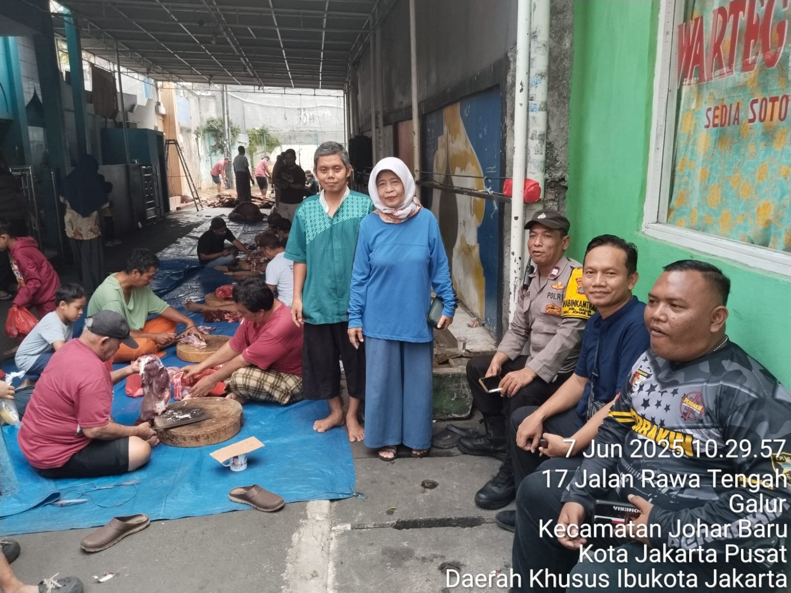 refubliknews.com, || Jakarta Pusat — Dalam rangka perayaan Hari Raya Idul Adha, Polsek Johar Baru melakukan monitoring pemotongan hewan qurban di wilayah Kelurahan Galur, Sabtu (7/6/2024). Kegiatan ini dilaksanakan untuk memastikan keamanan dan ketertiban masyarakat di lokasi penyembelihan hewan qurban, baik di masjid maupun mushola setempat.