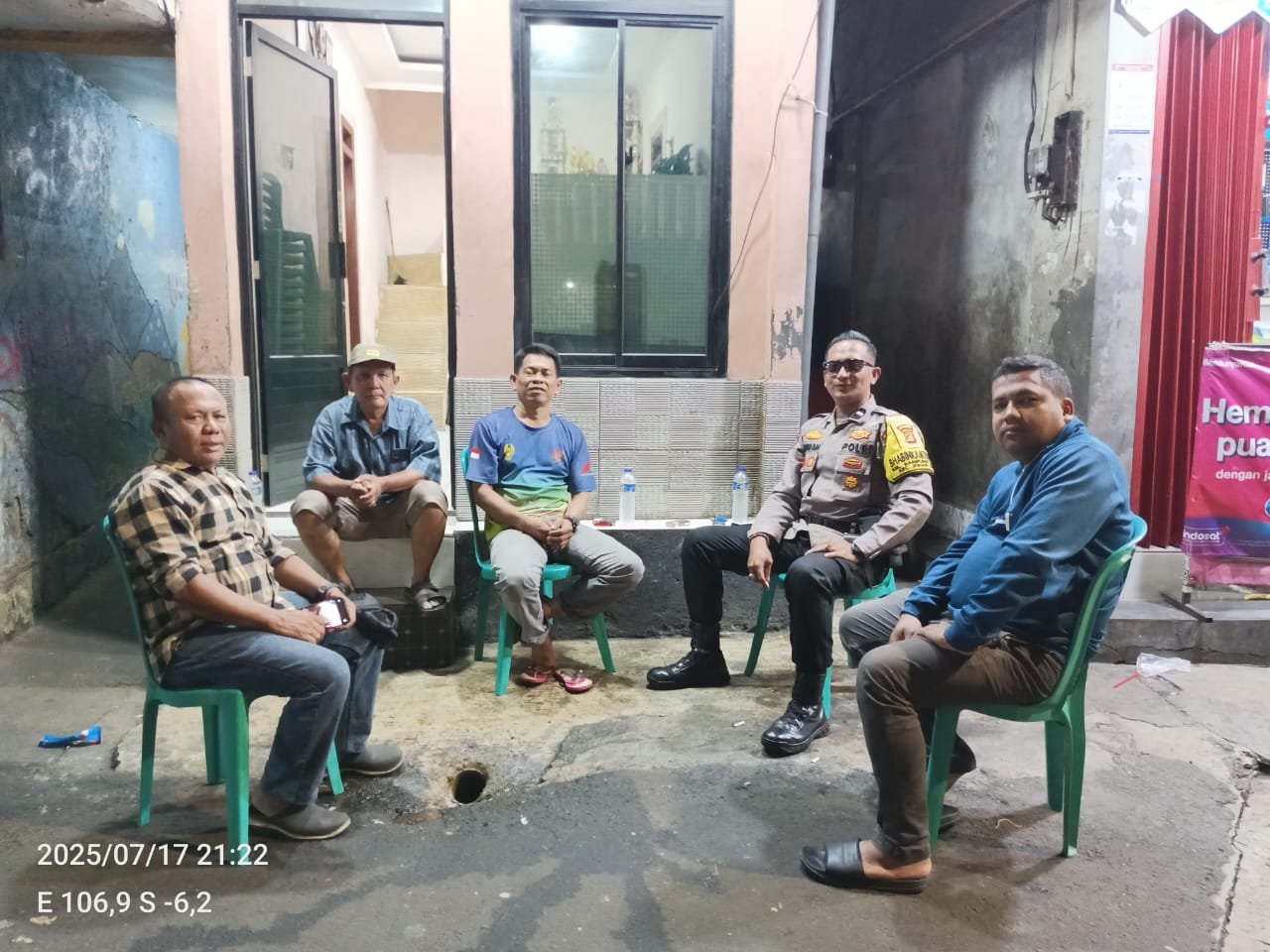 refubliknews.com, || Jakarta Pusat — Guna memperkuat keamanan lingkungan dan membangun kedekatan antara polisi dan masyarakat, Bhabinkamtibmas Kelurahan Kampung Rawa Aipda Ikhwan melaksanakan patroli wilayah sekaligus sambang tokoh masyarakat pada Kamis malam (17/7/2025) pukul 21.20 WIB di Sekretariat RW 08, Jalan Rawa Sawah 5, Kelurahan Kampung Rawa, Kecamatan Johar Baru, Jakarta Pusat.