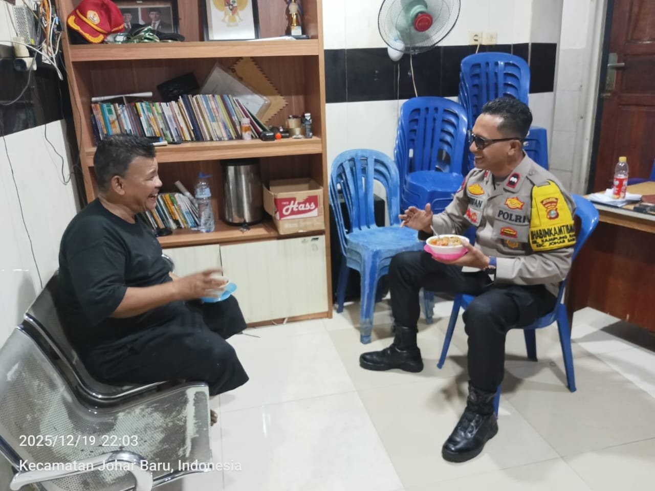 Jakarta Pusat — Dalam upaya menjaga situasi keamanan dan ketertiban masyarakat (kamtibmas) tetap aman dan kondusif, jajaran Polsek Johar Baru melaksanakan kegiatan cooling system, patroli wilayah, serta door to door system (DDS) dengan menyambangi Ketua RW 04 Kelurahan Kampung Rawa, Jumat (19/12/2025) sekitar pukul 20.05 WIB.