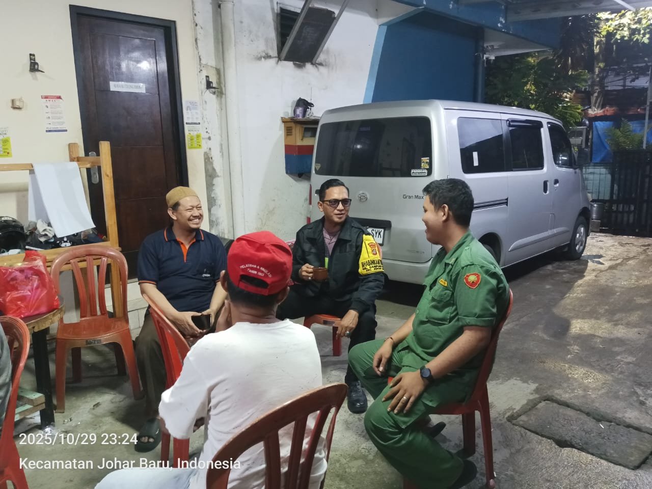 refubliknews.com || Jakarta Pusat – Bhabinkamtibmas Kelurahan Kampung Rawa Aipda Ikhwan melaksanakan patroli wilayah dan kunjungan ke Pos Siskamling Terpadu RW02, Jl. Rawa Sawah 4 RT01 RW02, Kelurahan Kampung Rawa, Kecamatan Johar Baru, Rabu (29/10/2025) pukul 23.20 WIB.