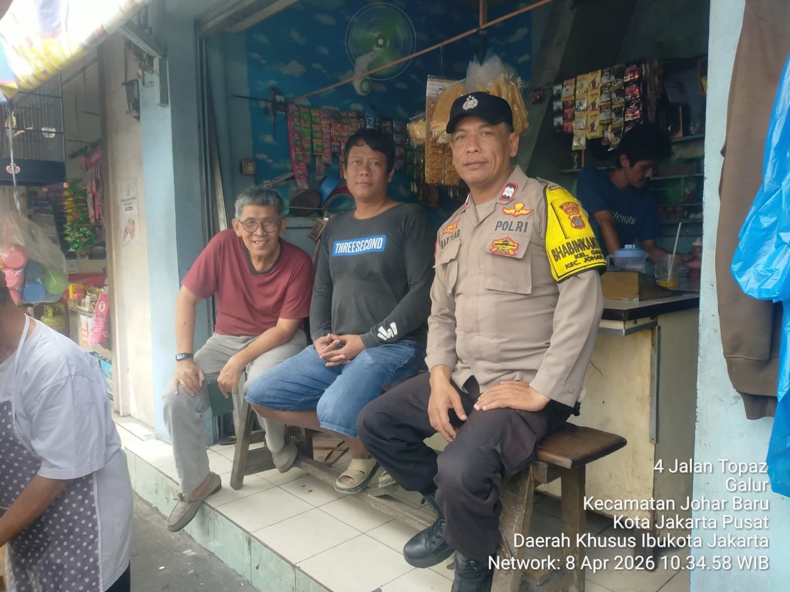 refubliknews.com, || Jakarta Pusat – Dalam rangka menjaga situasi keamanan dan ketertiban masyarakat, Bhabinkamtibmas Kelurahan Galur Aiptu Baktiar melaksanakan patroli dan sambang warga di wilayah Kelurahan Galur, Kecamatan Johar Baru, Jakarta Pusat, Rabu (8/4/2026) pukul 11.30 WIB.