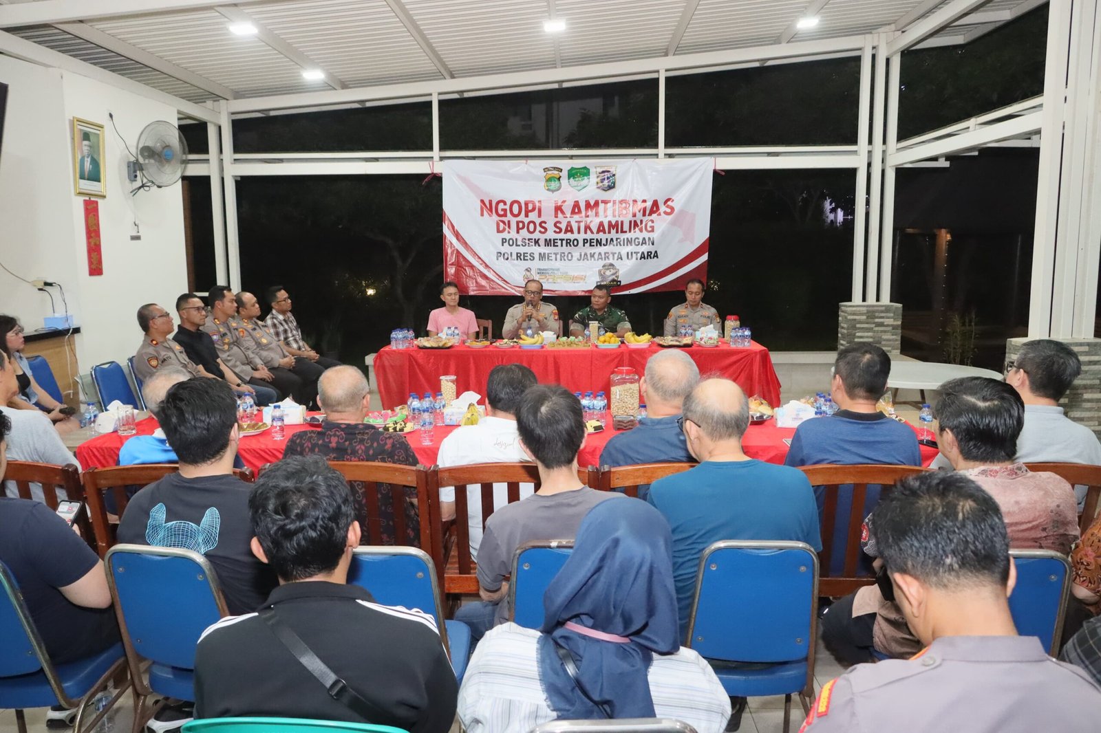 refubliknews.com, – Jakarta – Kapolres Metro Jakarta Utara Kombes Pol Gidion Arif Setyawan menggelar Ngopi Kamtibmas di Kantor RW Jl. Pinisi Kapuk Muara, Penjaringan, Kamis (11/7/24) malam.