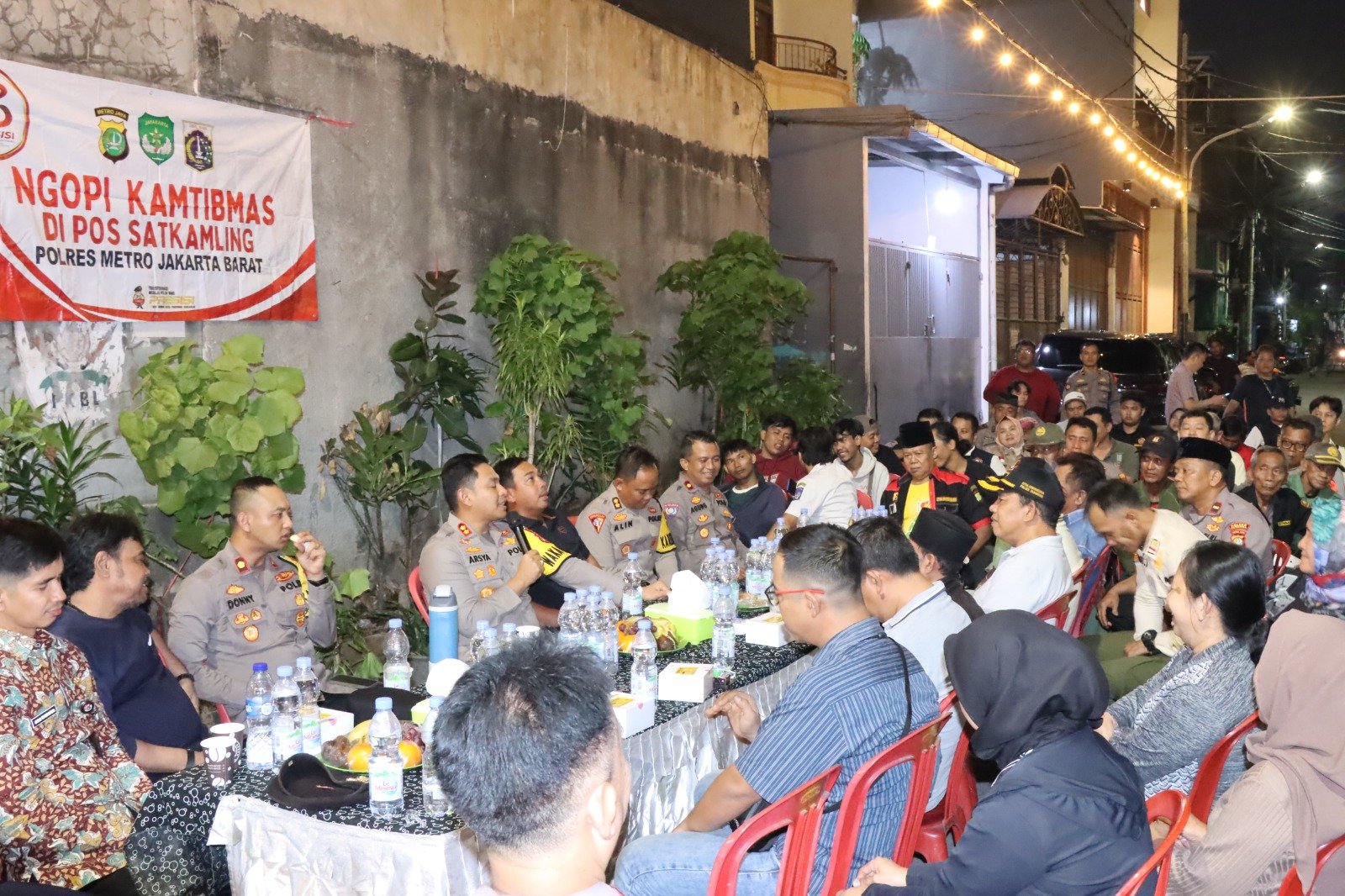 Polres Metro Jakarta Barat melaksanakan salah satu program unggulan Kapolda Metro Jaya, Irjen Pol Karyoto, yaitu Ngopi Kamtibmas di Pos Satkamling setempat.