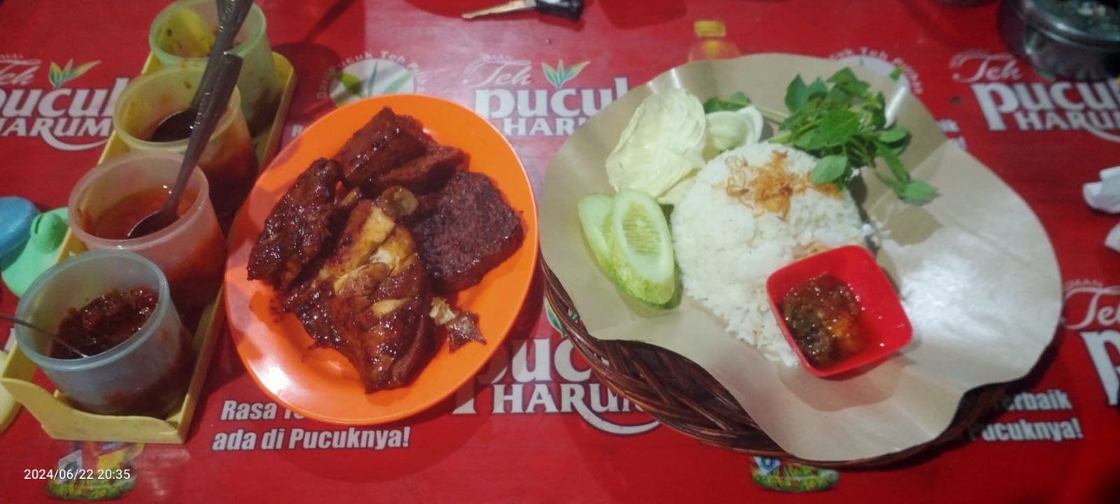 “Disini tempat favorit saya makan ayam panggang, pas sama selera saya. Daging ayamnya itu enak banget, terus empuk juga. Dalam seminggu bisa dua atau tiga kali saya makan ini” ujar Sukirman sambil menikmati Ayam Panggang Ibu Suwanti, Sabtu (22/06/2024) malam.