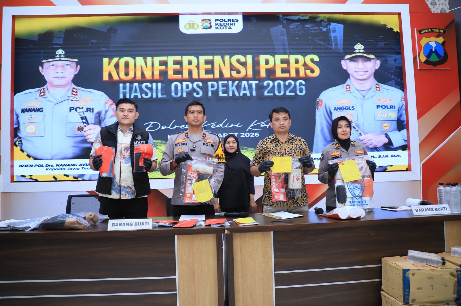 Hal itu disampaikan langsung Waka Polres Kediri Kota Kompol Putu Gde Caka Pratyaksa Ratsuko, S.I.K., M.I.K., dalam konferensi pers di Gedung Rupatama Polres Kediri Kota Jumat (13/3/2026).