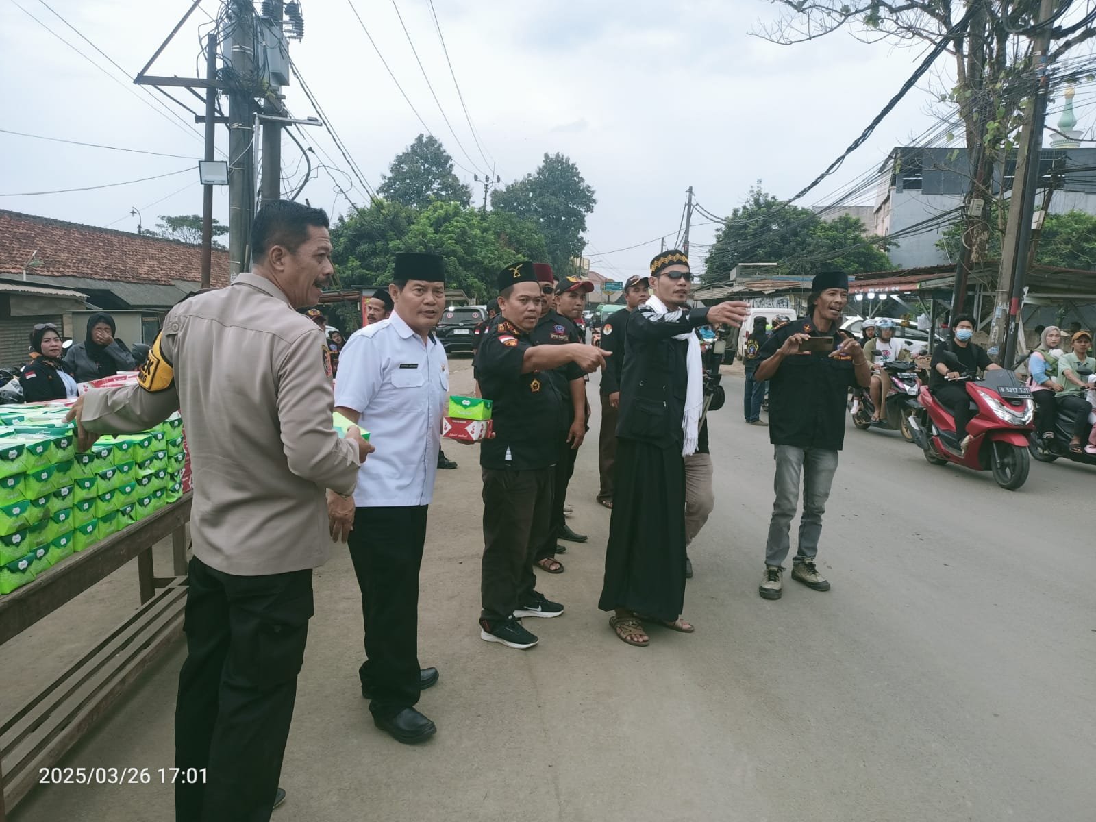 refubliknews.com, || Parung panjang, Kab. Bogor, Ormas BPPKB Banten DPAC Parung panjang membagikan 1000 takjil gratis dan santunan yatim di dampingi oleh Suharto SH, Kapolsek parung panjang, chaeruka judyanto Nugroho M. SI. Camat Parung panjang, di jalan raya Muhammad toha tepat nya di depan pos pantau Polsek Parung panjang. Rabu (26-03-2025)