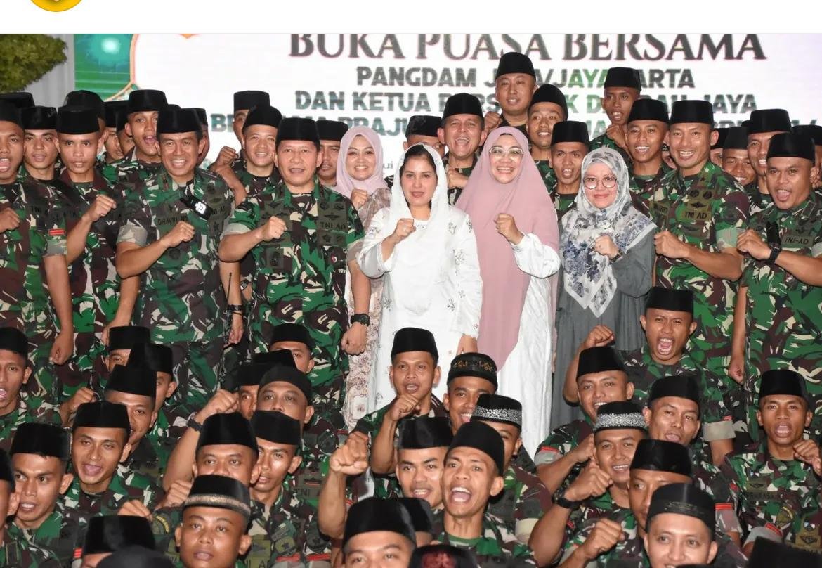 Pagdam Jayakarta Mayjen TNI Raphael Granada Baay bersama mengadakan safari ramadhan berbuka puasa bersama keluarga besar Brigif-1/JS di Yonif 202/Tajimalela Bekasi, Kamis 13/3/2025.