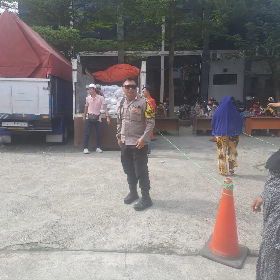 Bhabinkamtibmas Kelurahan Harapa Mulya Bripka Yopi SH, melaksanakan kegiatan kunjungan pengamanan pembelian paket sembako murah untuk warga di Kel Harapan Mulya di wilayah hukum Polsek Medan Satria.