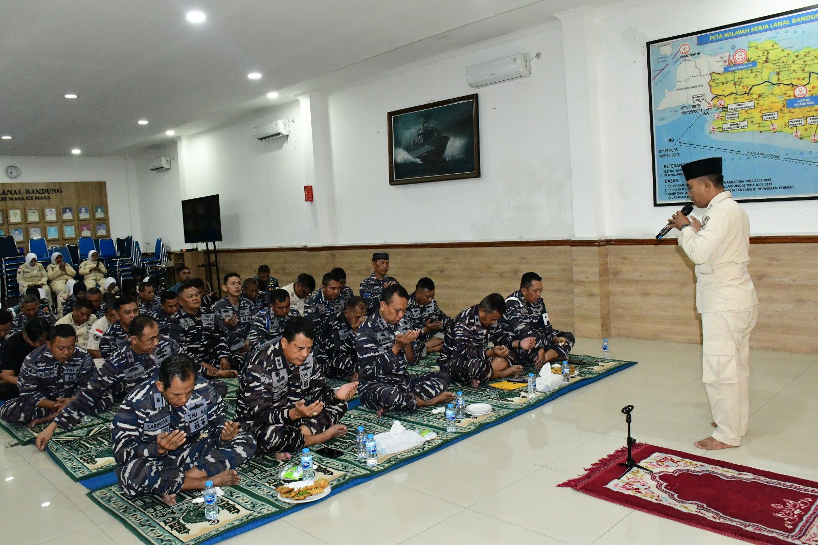 Bertindak selaku penceramah adalah Ustadz Dadang Ruhiat yang sehari-hari menjabat sebagai PNS Minlog Lanal Bandung.