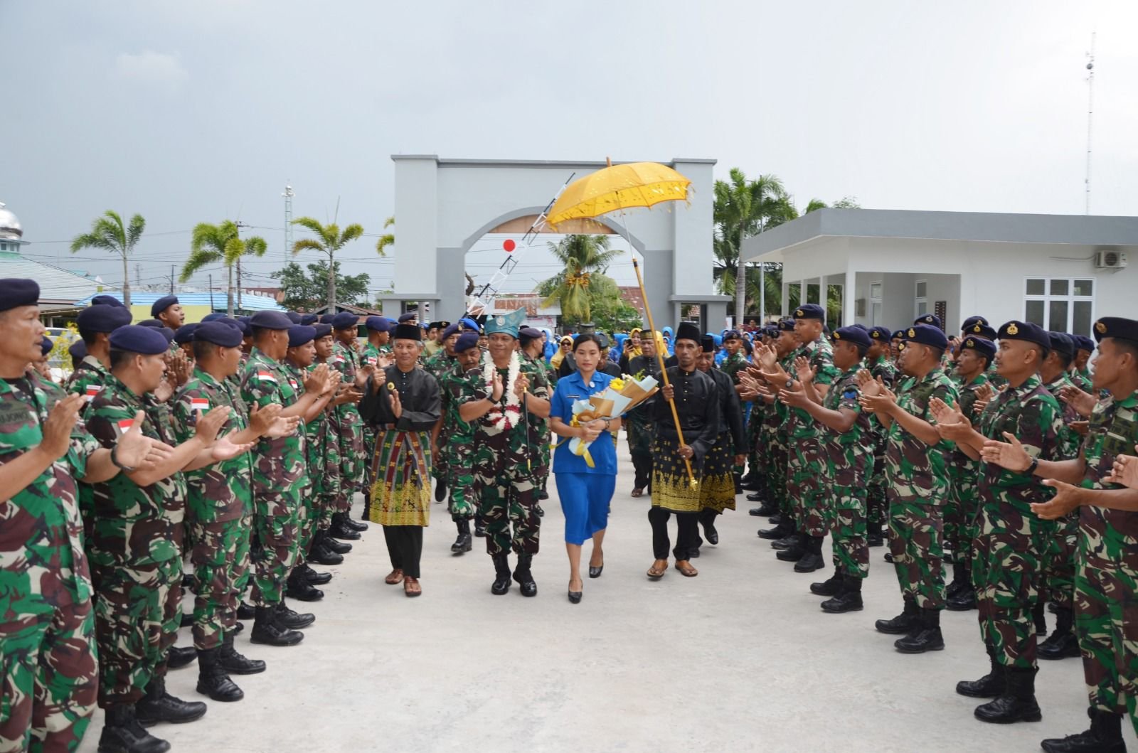 Setiba di Mako Lanal Dumai, Komandan Lanal Dumai menerima laporan selamat datang oleh Dansatma Lanal Dumai Kapten Laut (KH) Arief Rahman Hakim dan iringan Kompang Melayu serta pengalungan bunga oleh perwakilan anak-anak TK. Hang Tuah, pemasangan Tanjak oleh Pemangku Ketua Umum Majelis Kerapatan Adat (MKA) Lembaga Adat Melayu Riau (LAMR) Kota Dumai Datuk Seri Azhar Yazid, S.Pd.I., serta yel-yel dan lagu Mars Lanal Dumai oleh prajurit Lanal Dumai.