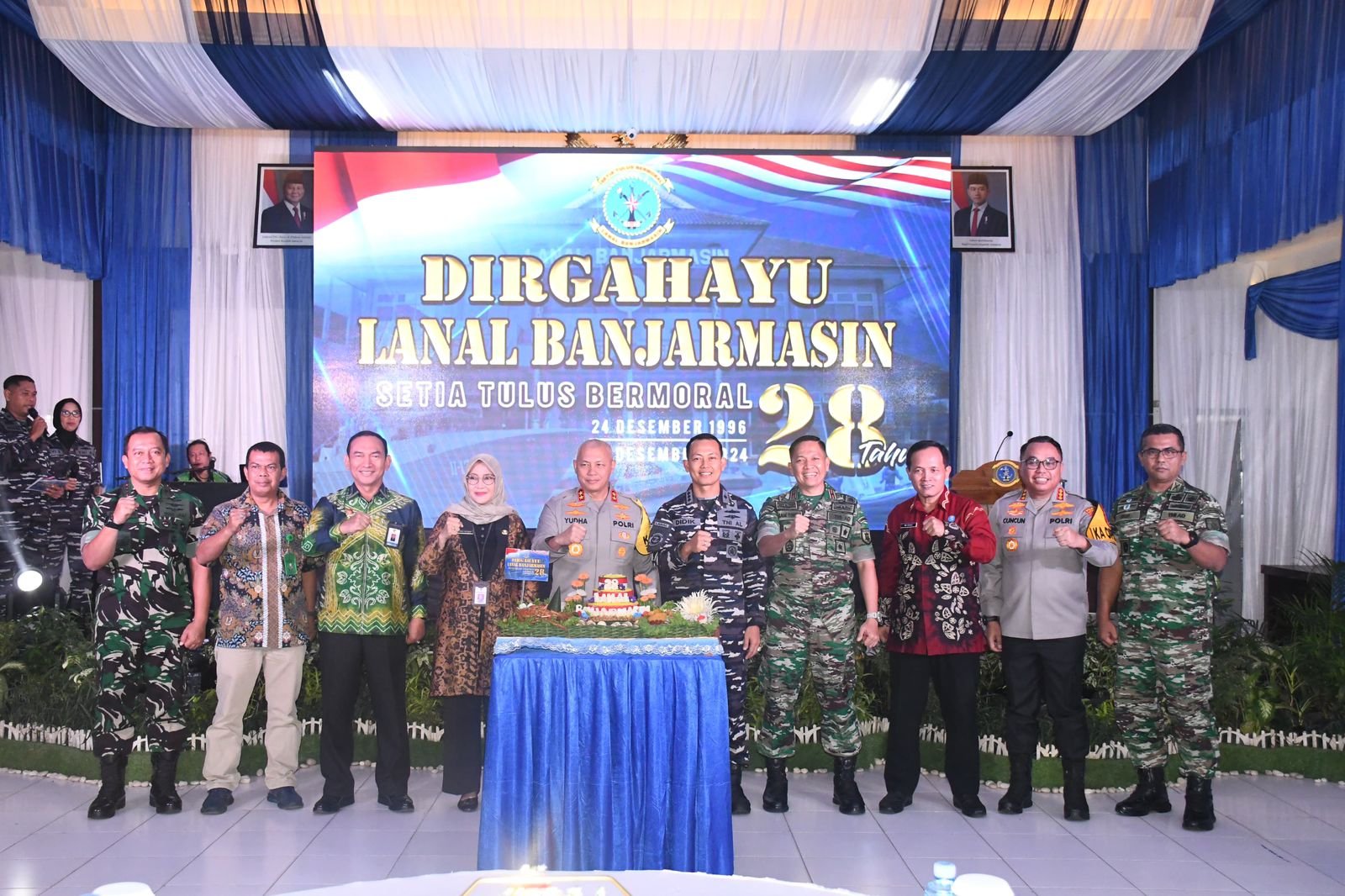 refubliknews.com, – TNI AL, Banjarmasin,- Dalam rangka memperingati HUT Ke-28 Lanal Banjarmasin Tahun 2024, Danlanal Banjarmasin Kolonel Laut (P) Didik Kusyanto, M.Tr.Hanla., didampingi Ketua Jalasenastri Cabang IV Korcab XIII Daerah Jalasenastri Armada II Ny. Derry Didik Kusyanto beserta Prajurit Lanal Banjarmasin dan Pengurus Jalasenastri melaksanakan tasyakuran. Kegiatan dihadiri oleh Forkopimda Kalsel dan Insan Maritim yang digelar di Gedung Mustafa Ideham Mako Lanal Banjarmasin, Jalan Ahmad Yani, Kelurahan Kebun Bunga, Kecamatan Banjarmasin Timur, Kota Banjarmasin, Provinsi Kalimantan Selatan, Jum’at (27/12/2024).