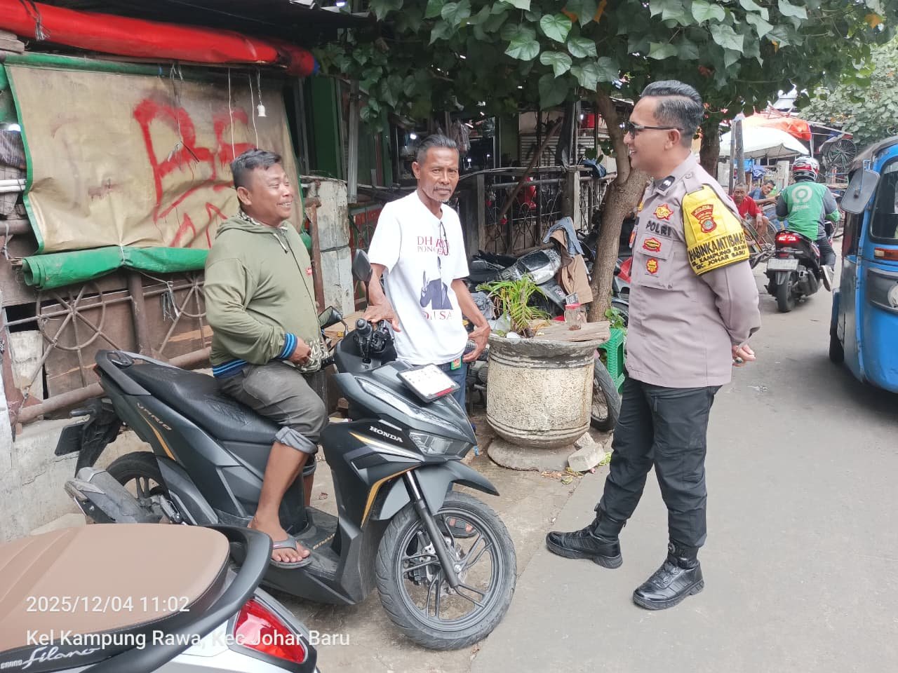 refubliknews.com, || Jakarta Pusat — Dalam upaya menjaga stabilitas keamanan dan ketertiban masyarakat, Bhabinkamtibmas Kelurahan Kampung Rawa, Aipda Ikhwan, melaksanakan patroli kewilayahan serta monitoring aktivitas warga di area Pasar Gembrong, Jl. Rawa Selatan 1 RT 02 RW 04, Kecamatan Johar Baru, pada Kamis (4/12/2025) pukul 11.00 WIB.
