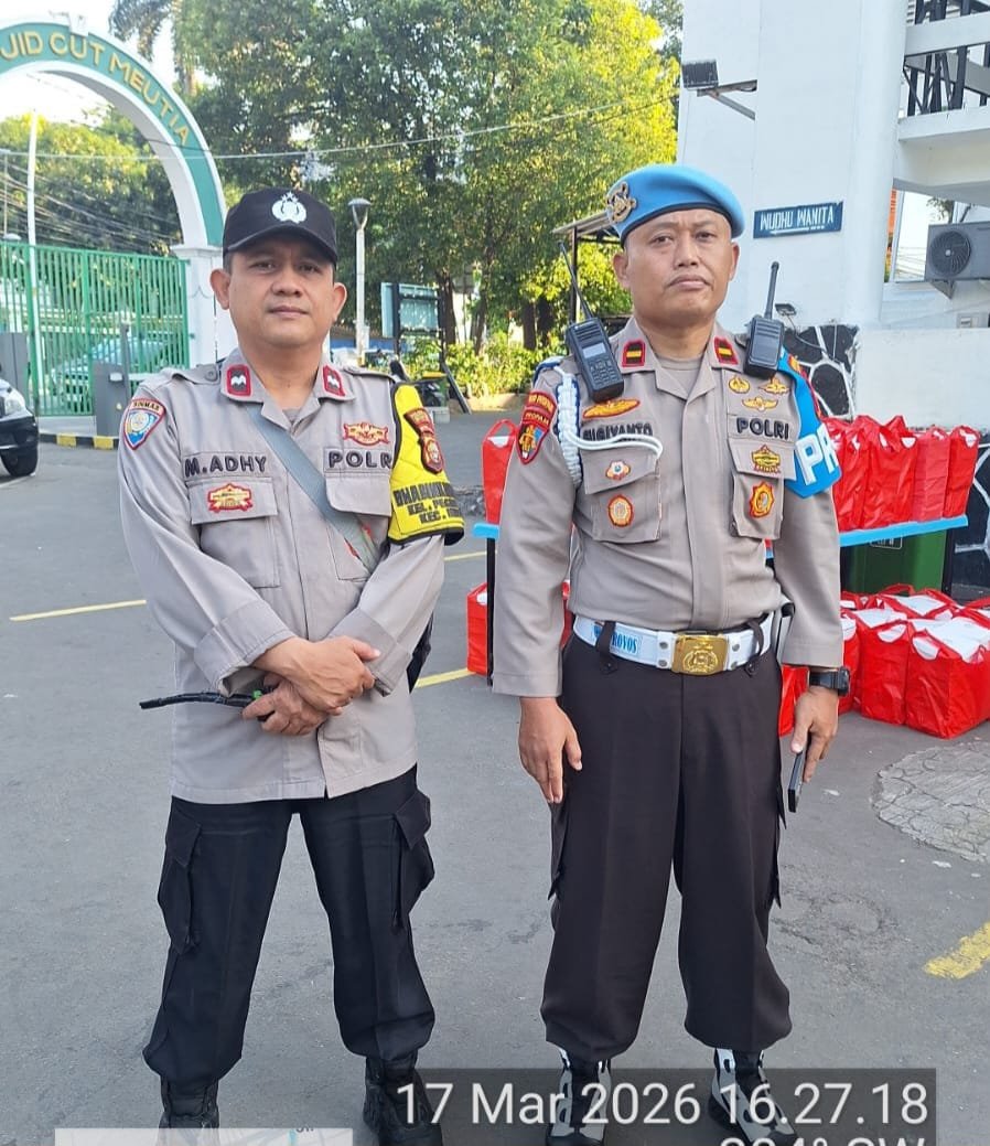 Jakarta Pusat – Personel Polsek Metro Menteng melaksanakan pelayanan dan pengamanan kegiatan pasar tumpah selama bulan suci Ramadhan di kawasan Masjid Cut Mutia, yang berlokasi di Jalan Taman Cut Mutia, Cikini, Menteng, Jakarta Pusat. Kegiatan ini dilakukan guna memastikan keamanan dan ketertiban masyarakat (kamtibmas) tetap terjaga di tengah meningkatnya aktivitas warga yang berbelanja takjil menjelang waktu berbuka puasa. Selasa (17/3/2026)