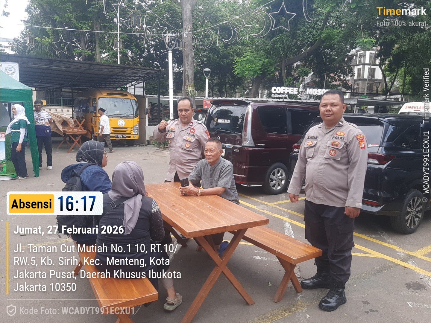 Jakarta Pusat – Dalam rangka memberikan rasa aman dan nyaman kepada masyarakat selama bulan suci Ramadhan, personel Polsek Metro Menteng melaksanakan pelayanan serta pengamanan kegiatan pasar tumpah Ramadhan yang berlokasi di Masjid Cut Mutia, Jalan Taman Cut Mutia, Cikini, Menteng, Jakarta Pusat, pada sore hari menjelang waktu berbuka puasa. Jumat (27/2/2026)
