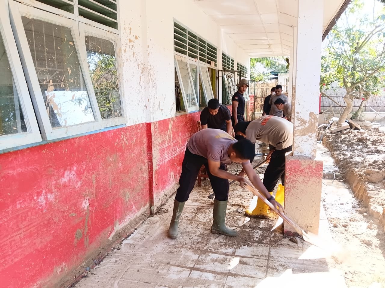 Dalam pelaksanaannya, sejak pukul 09.00 WIB hingga selesai, personel Pasbrimob 1 BKO Polres Tapanuli Tengah membersihkan material lumpur yang mengendap di ruang-ruang kelas SD Negeri 158502 Sibuluan. Secara bersamaan, personel lainnya mendistribusikan air bersih kepada masyarakat di wilayah Kecamatan Pandan yang terdampak keterbatasan pasokan air.