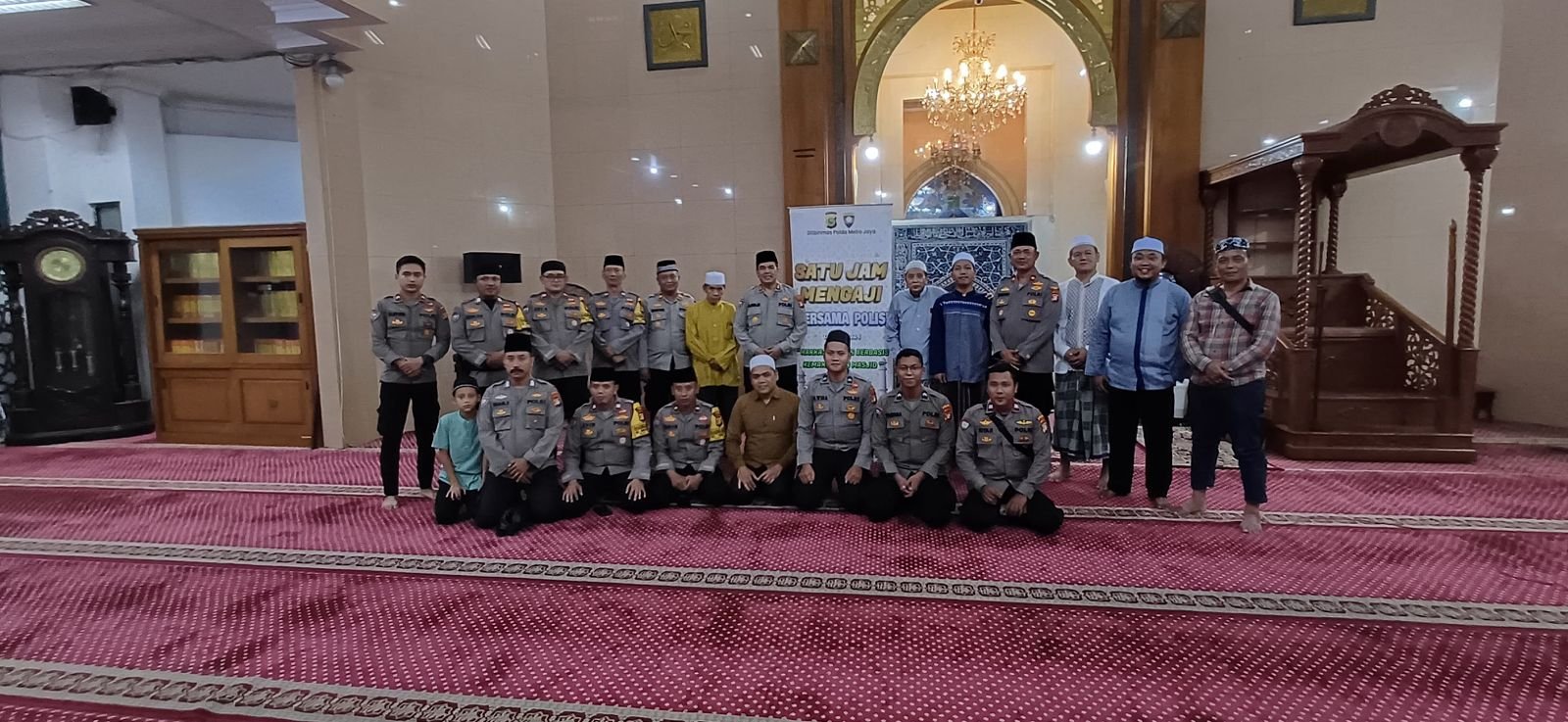 Jakarta – Polda Metro Jaya menggelar program ‘Satu Jam Mengaji Bersama Polisi’ yang berlokasi di Masjid Jami Al Ma’mur Jl. KH Abdullah Syafei No.22, RT.5/RW.6, Bukit Duri, Kec. Tebet, Kota Jakarta Selatan, Daerah Khusus Ibukota Jakarta 12840. Program ini digelar sebagai cooling system pasca pemungutan suara Pemilu 2024. Rabu (21/02/24).