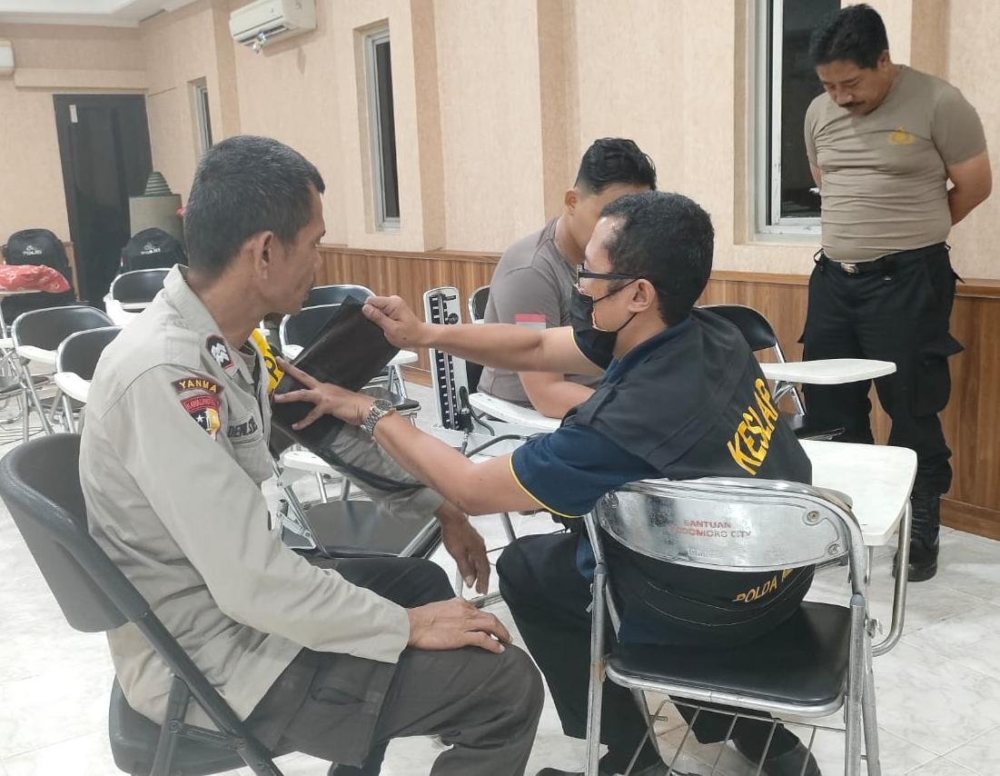 Dr. Meika Yusuf, Kasi Dokkes Polres Metro Jakarta Barat, menjelaskan bahwa pengecekan ini bukan hanya dilakukan sebelum anggota tersebut berjaga, tetapi juga dilakukan pasca pengamanan TPS.