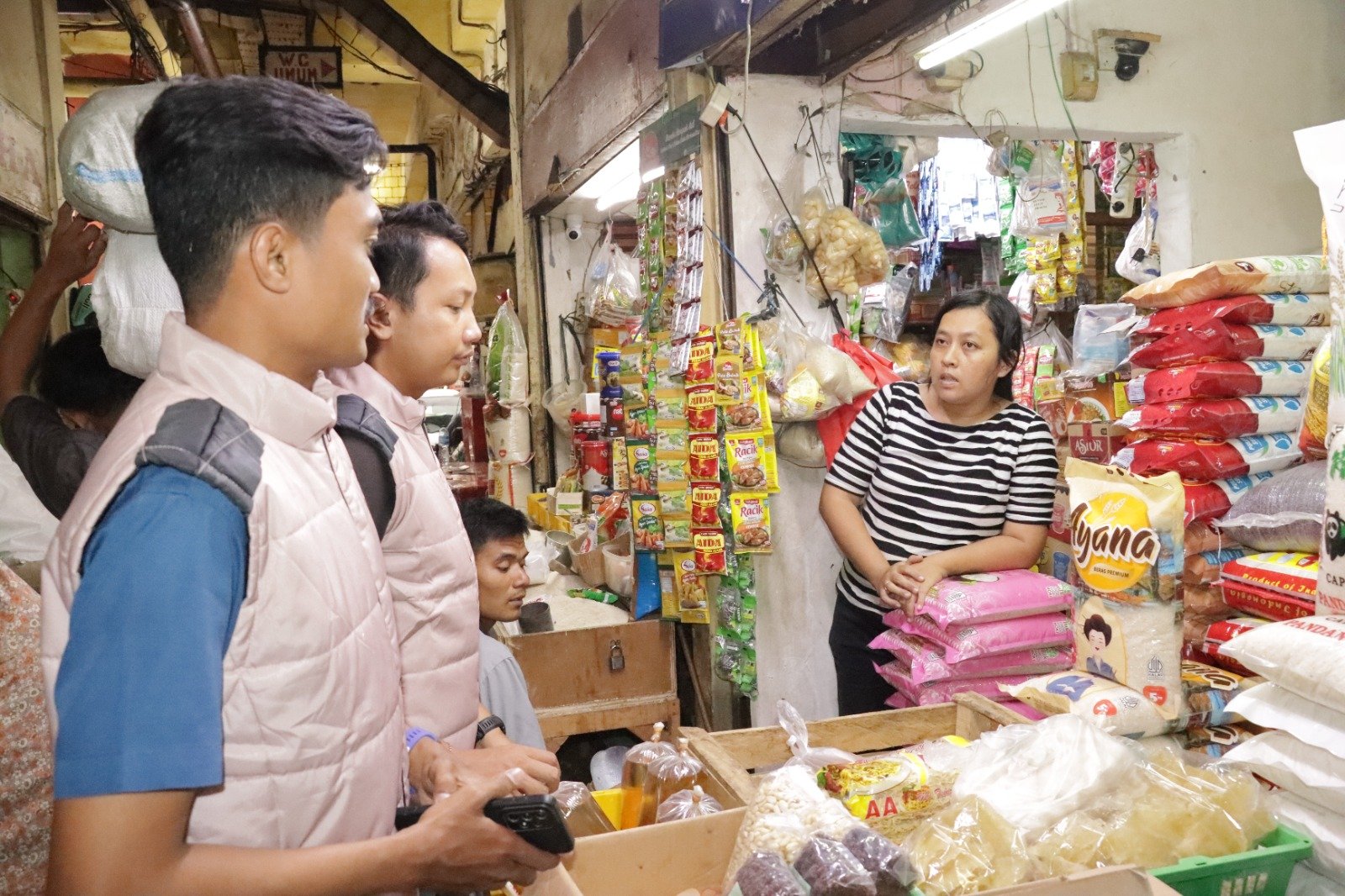 Tak hanya itu, pengecekan dilanjutkan ke Pasar Jaya Tomang Barat, di mana bertemu dengan Ibu Puput, seorang pedagang sembako yang juga menyediakan stok beras.