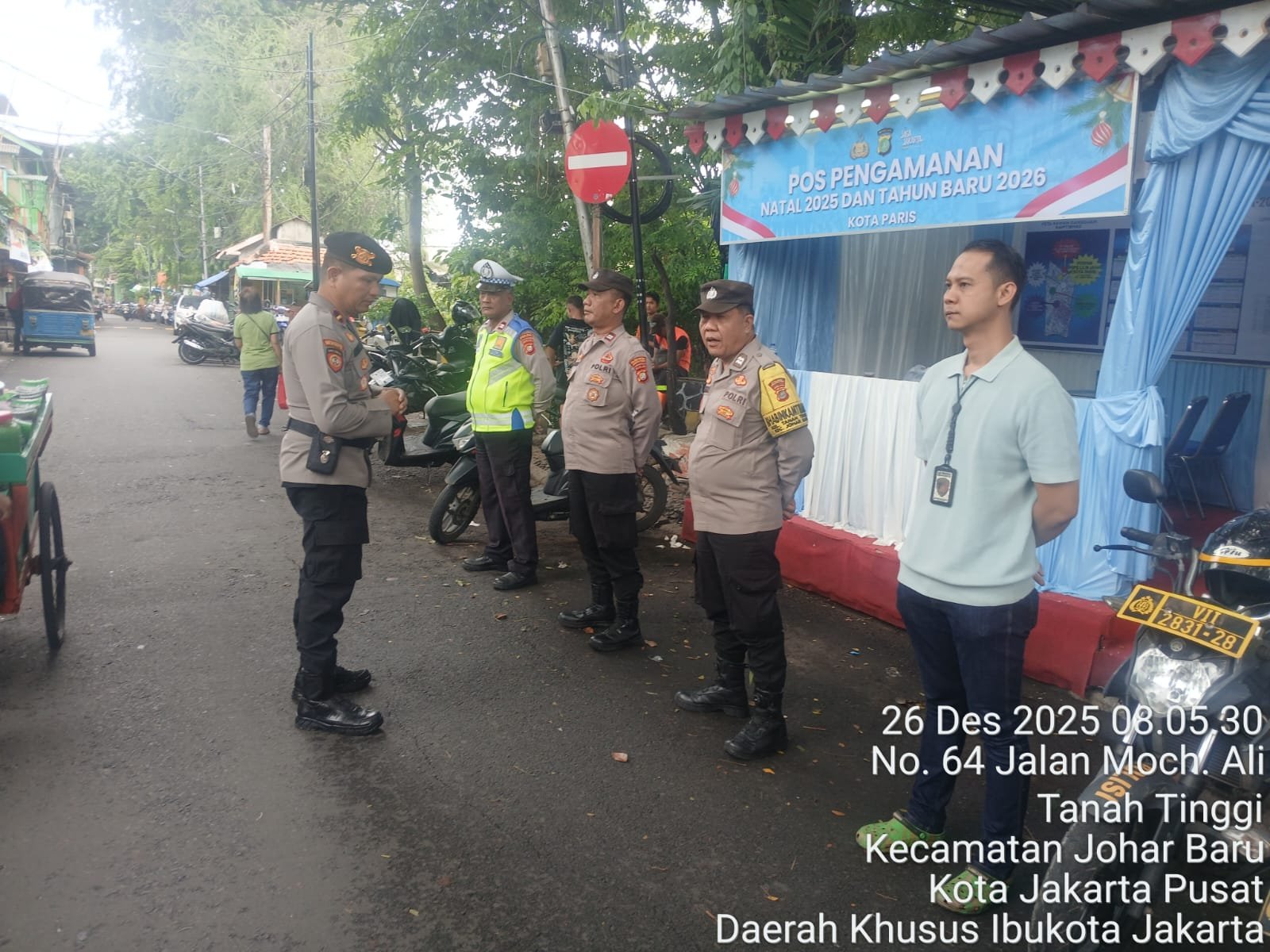 Sementara itu, Kapolsek Johar Baru Kompol Saiful Anwar menyampaikan bahwa kekuatan personel yang ditempatkan di Pospam Kota Paris berjumlah delapan personel, yang terdiri dari Kaposko serta personel regu pengamanan. “Seluruh personel kami instruksikan untuk selalu standby di Pospam, responsif terhadap situasi di lapangan, serta mengedepankan pelayanan humanis kepada masyarakat. Kehadiran polisi di tengah masyarakat diharapkan mampu memberikan rasa aman dan nyaman selama perayaan Nataru,” ungkap Kompol Saiful Anwar.
