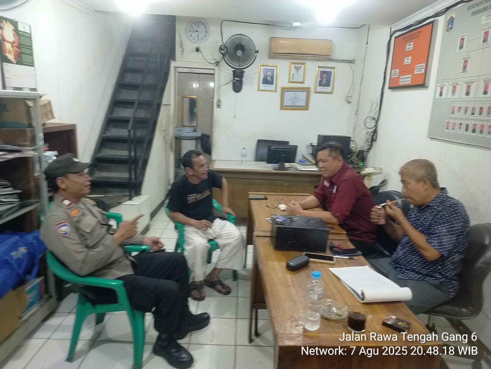 refubliknews.com, || Jakarta Pusat – Dalam upaya menjaga kondusifitas wilayah dan mempererat hubungan dengan masyarakat, Bhabinkamtibmas Kelurahan Galur Aiptu Baktiar Emri melaksanakan kegiatan sambang ke Balai Warga RW 04 yang berlokasi di Jl. Rawa Tengah, Kelurahan Galur, Kecamatan Johar Baru, Jakarta Pusat, pada Kamis malam, 7 Agustus 2025 pukul 21.30 WIB.