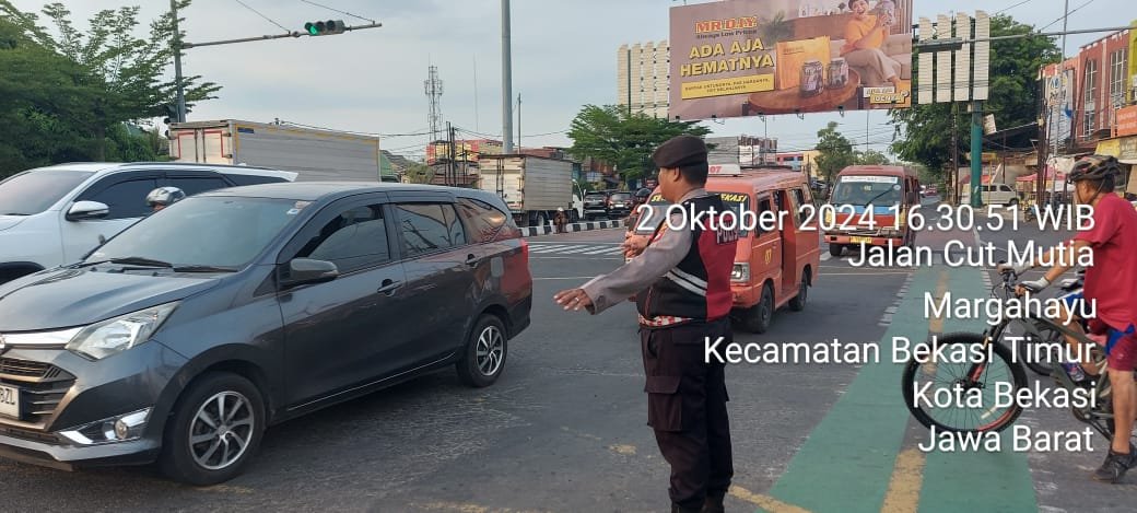 refubliknews.com, – Personil Patko 9401, Aiptu Jeri Abriandi dan Bripka Ade Kurniawan, melaksanakan giat pengaturan lalu lintas sore di TL Perempatan Kampus Unisma, Jl. Cut Mutia, Kelurahan Margahayu, Kecamatan Bekasi Timur, Kota Bekasi.