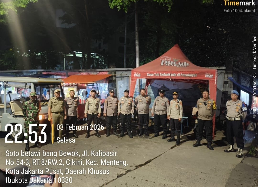Jakarta Pusat – Guna mencegah potensi gangguan keamanan dan ketertiban masyarakat (kamtibmas), Polsek Metro Menteng menggelar patroli cipta kondisi (cipkon) dalam rangka program Jaga Jakarta. Kegiatan patroli tersebut dipimpin oleh Perwira Pengendali (Padal) IPTU Agung Sukiswo dan dilaksanakan di perbatasan Kwitang–Kalipasir, wilayah Menteng, Jakarta Pusat, yang dikenal sebagai salah satu titik rawan gangguan kamtibmas. Rabu (4/2/2026)