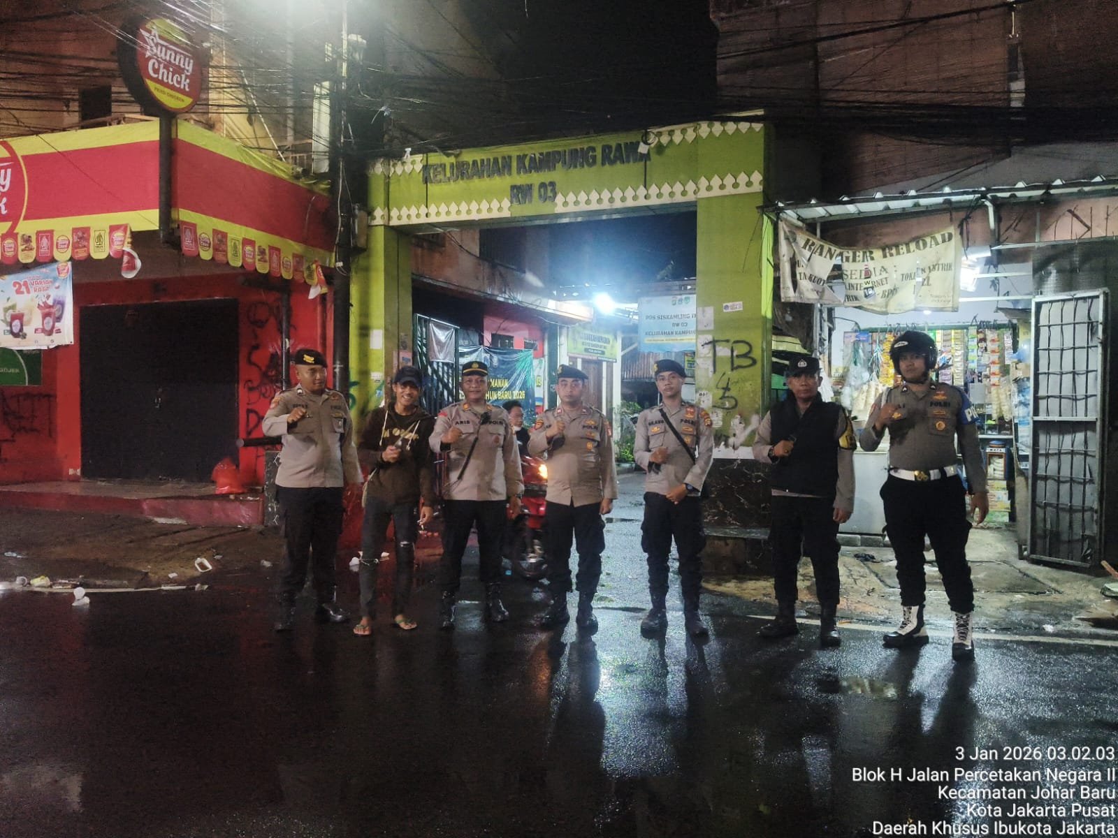 Jakarta Pusat – Dalam rangka mengantisipasi potensi gangguan keamanan dan ketertiban masyarakat (guantibmas) selama masa libur sekolah dan Tahun Baru, Polsek Johar Baru melaksanakan Patroli Cipta Kondisi di wilayah hukumnya, Sabtu (3/1/2026) dini hari.