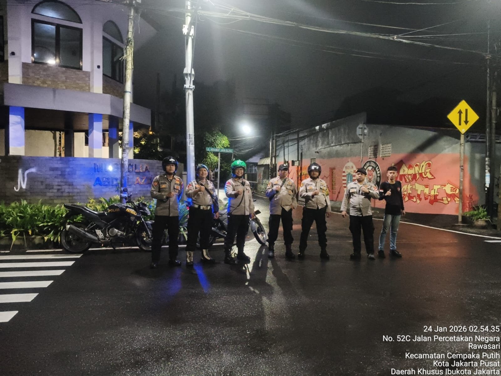 Kegiatan patroli yang dimulai pukul 02.41 WIB tersebut melibatkan 10 personel Polsek Johar Baru dan dipimpin langsung oleh Wakapolsek Johar Baru AKP Aris Setiyawan, didampingi Perwira Pengendali (Padal 1.1) Aiptu Eko Parwanto selaku PS Panit III Samapta.