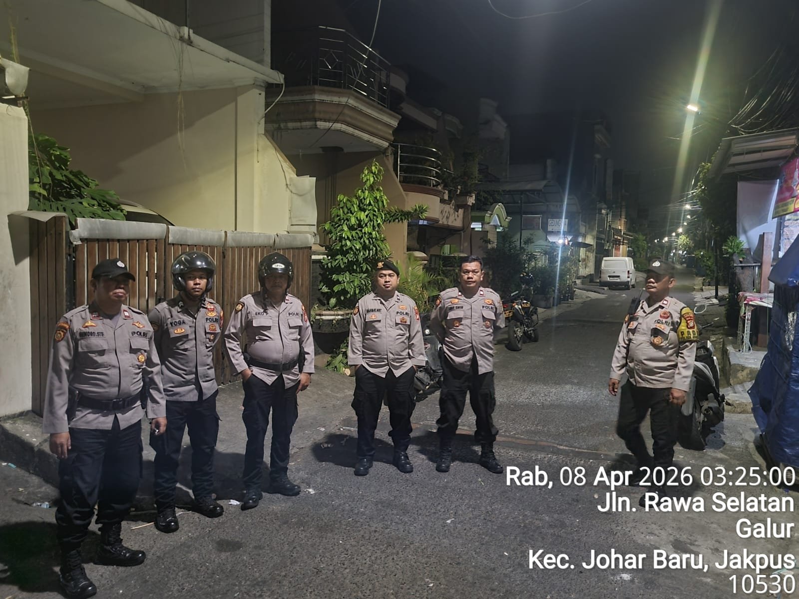 Kegiatan patroli melibatkan 10 personel yang dipimpin oleh Aiptu Zulfikar H selaku Kapolsubsektor Galur. Patroli diawali dengan pergerakan mobile pada pukul 02.15 WIB menyusuri sejumlah titik rawan, di antaranya Jalan Kramat Pulo Gundul, Jalan Kramat Jaya Baru, Gereja BNKP Nias, Jalan Rawa Selatan, Jalan Pangkalan Asem, Jalan Rawa Tengah, Jalan Letjen Suprapto, hingga kawasan Tanah Tinggi Barat dan kembali ke Mapolsek Johar Baru.