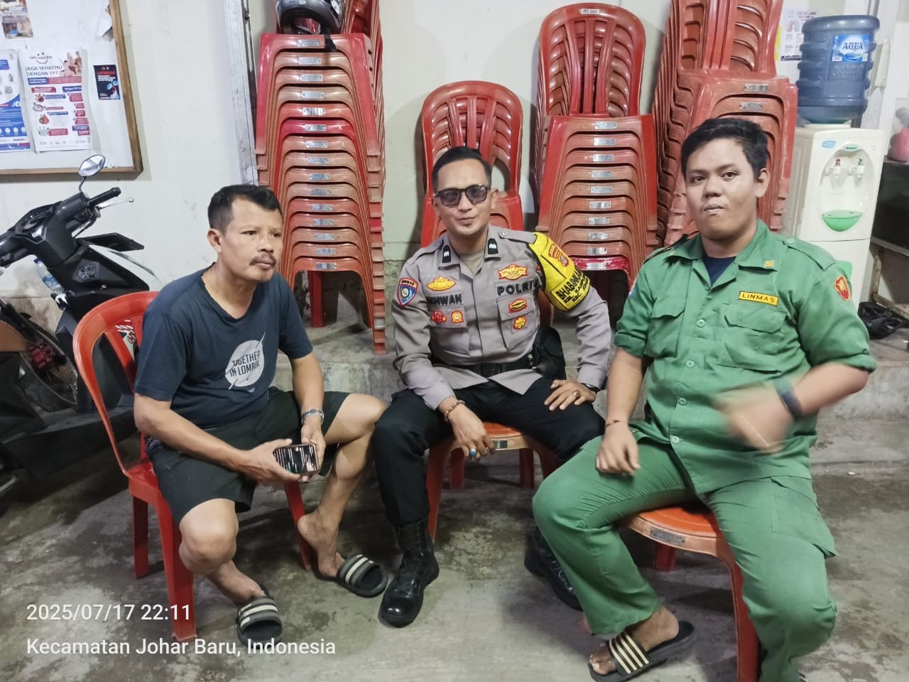 refubliknews.com, || Jakarta Pusat — Upaya menciptakan lingkungan yang aman dan kondusif terus digencarkan oleh jajaran Polsek Johar Baru melalui kegiatan sambang dan patroli malam. Pada Kamis (17/7/2025) pukul 22.00 WIB, Bhabinkamtibmas Kelurahan Kampung Rawa Aipda Ikhwan melaksanakan patroli dialogis sekaligus menyambangi Pos Satkamling RW 02 yang berlokasi di Jl. Rawa Sawah 4, Kelurahan Kampung Rawa, Kecamatan Johar Baru, Jakarta Pusat.